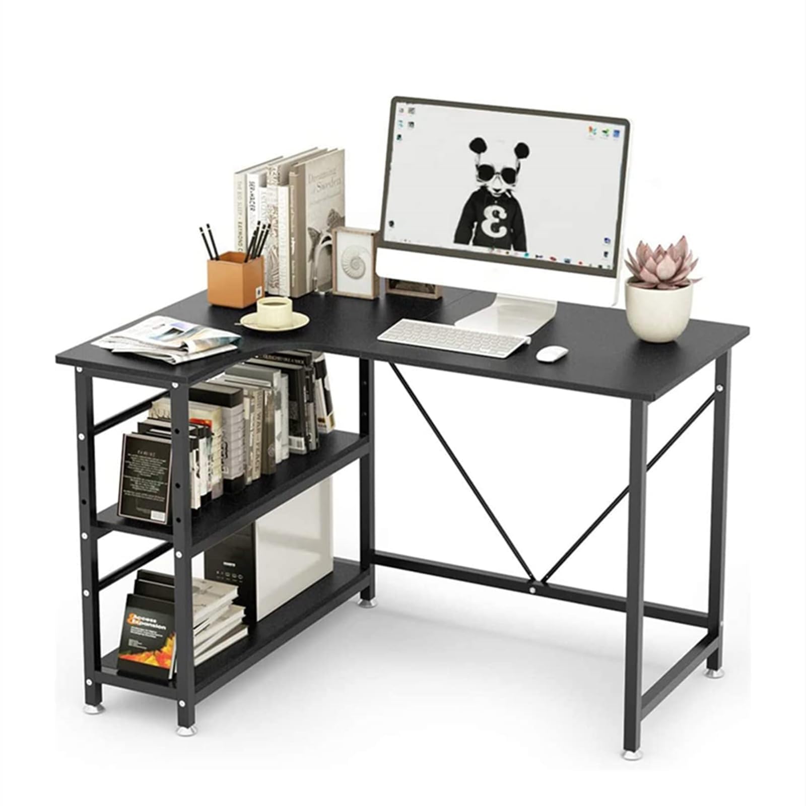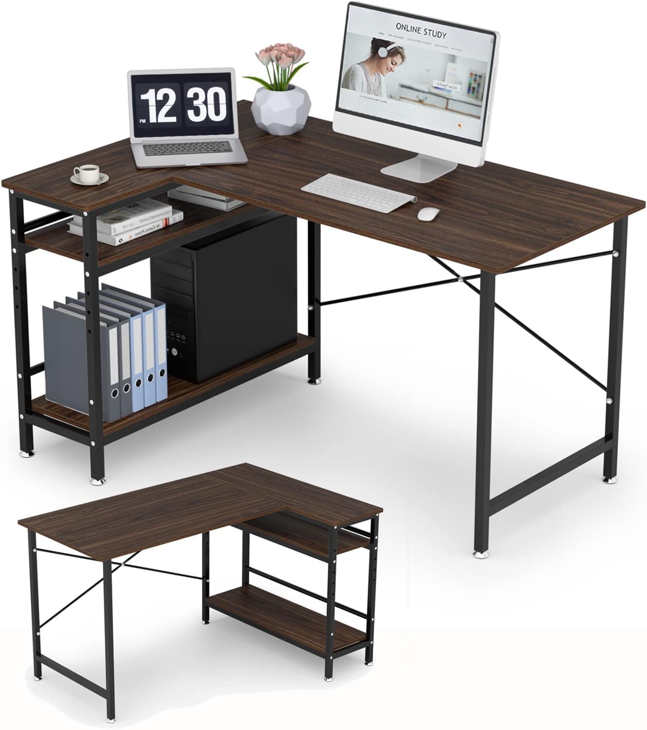 DEWEL L字型パソコンデスク 120cm 収納ラッ...