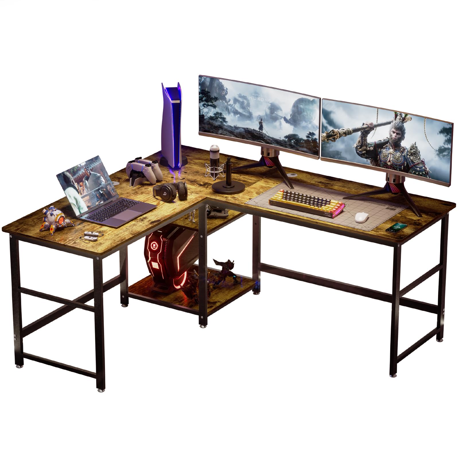 DEWEL ゲーミングL字型デスク 170+150c...