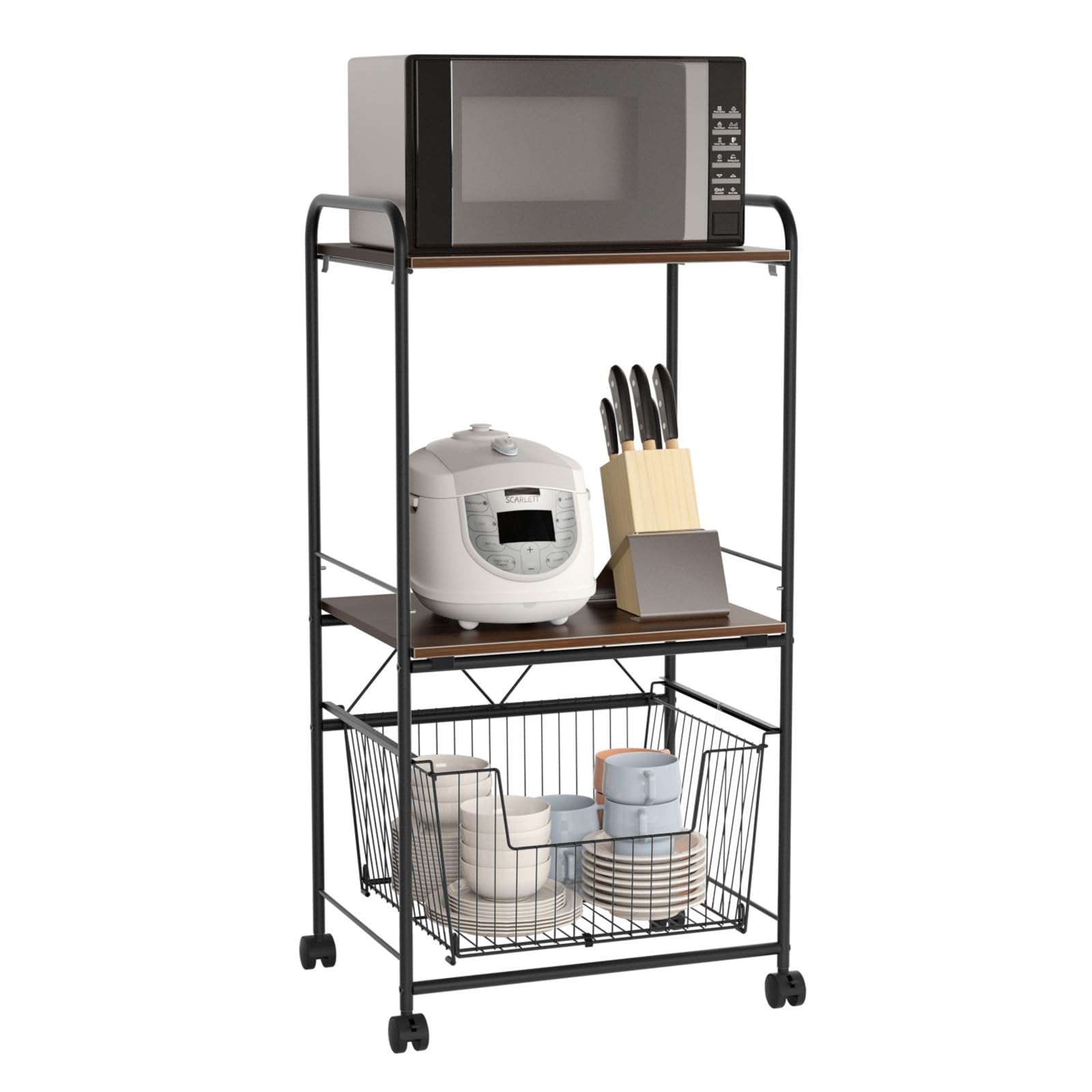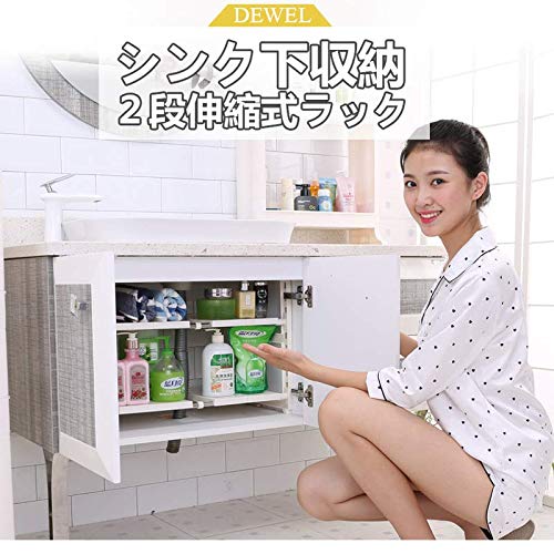 DEWEL レンジラック 幅50cm 2段棚+バスケッ...
