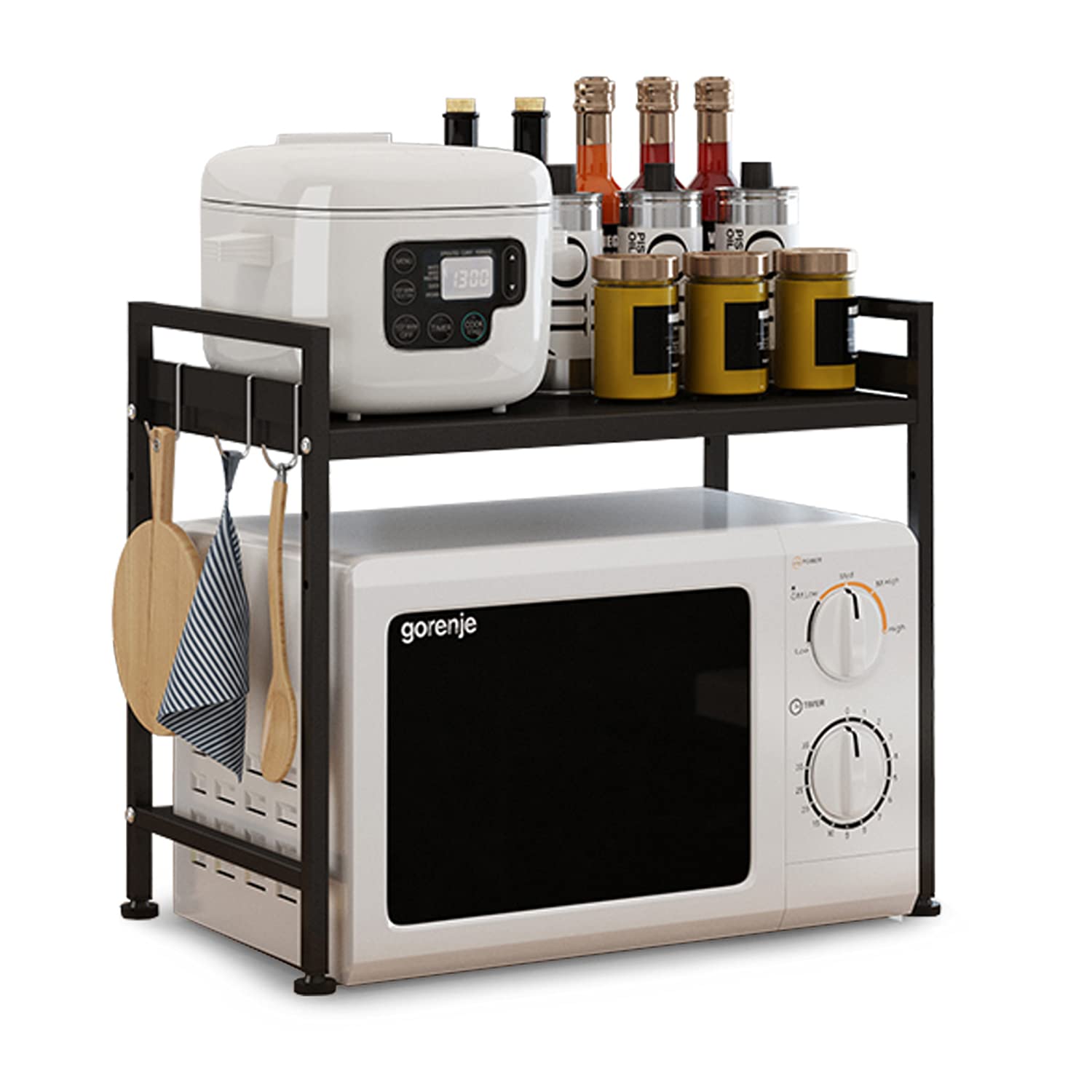 DEWEL レンジ上ラック 伸縮式 高さ調節可 耐熱・耐水 ステンレス製 ブラック