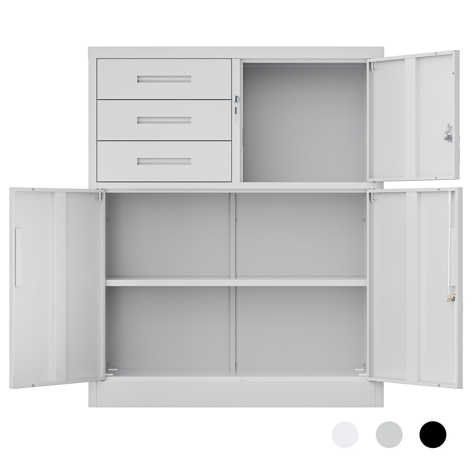 DEWEL スチールロッカー 3段 引き出し付き 両開き オフィス・学校・ロッカールーム・店舗対応 幅900×奥行400×高さ1090mm