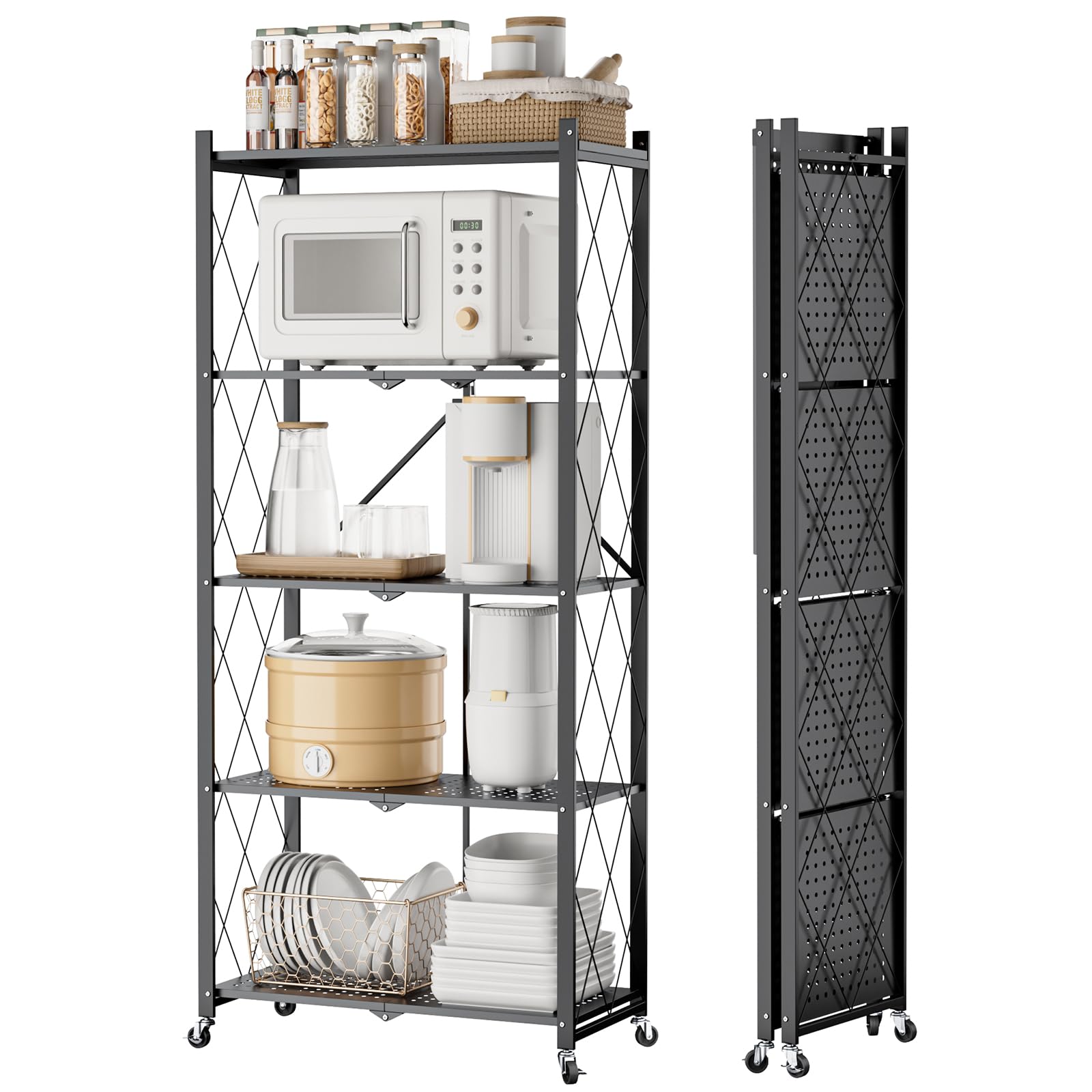 DEWEL レンジ上ラック 伸縮式 高さ調節可 耐熱・耐水 ステンレス製 ブラック