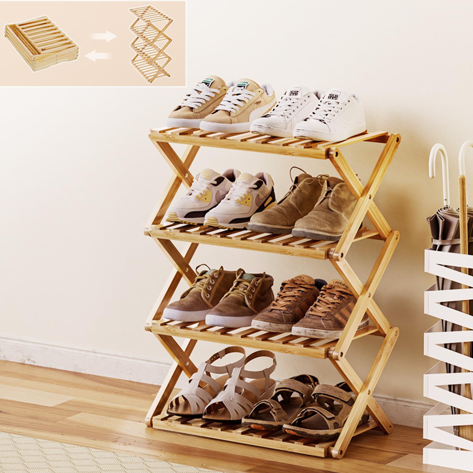 DEWEL シューズラック 4段 伸縮式 折りたたみ ...