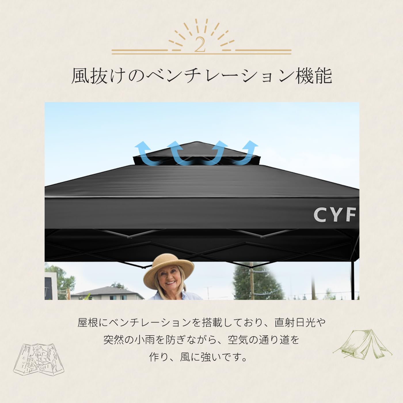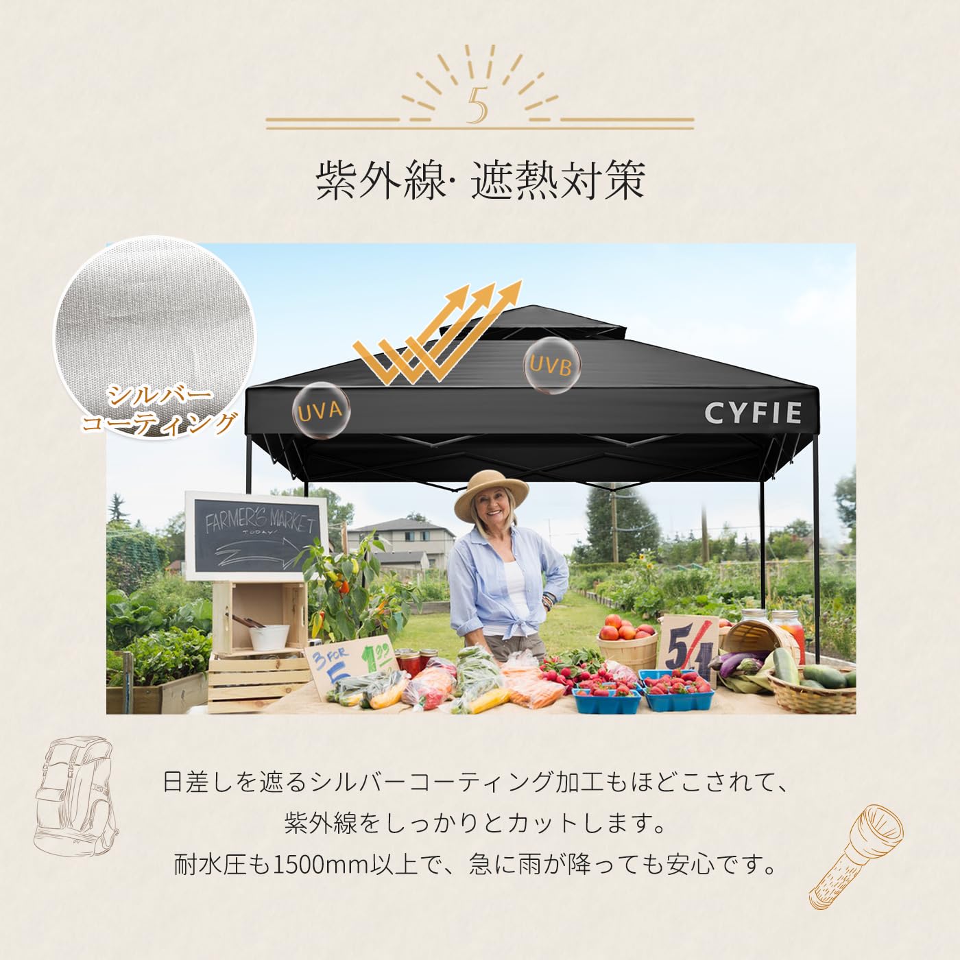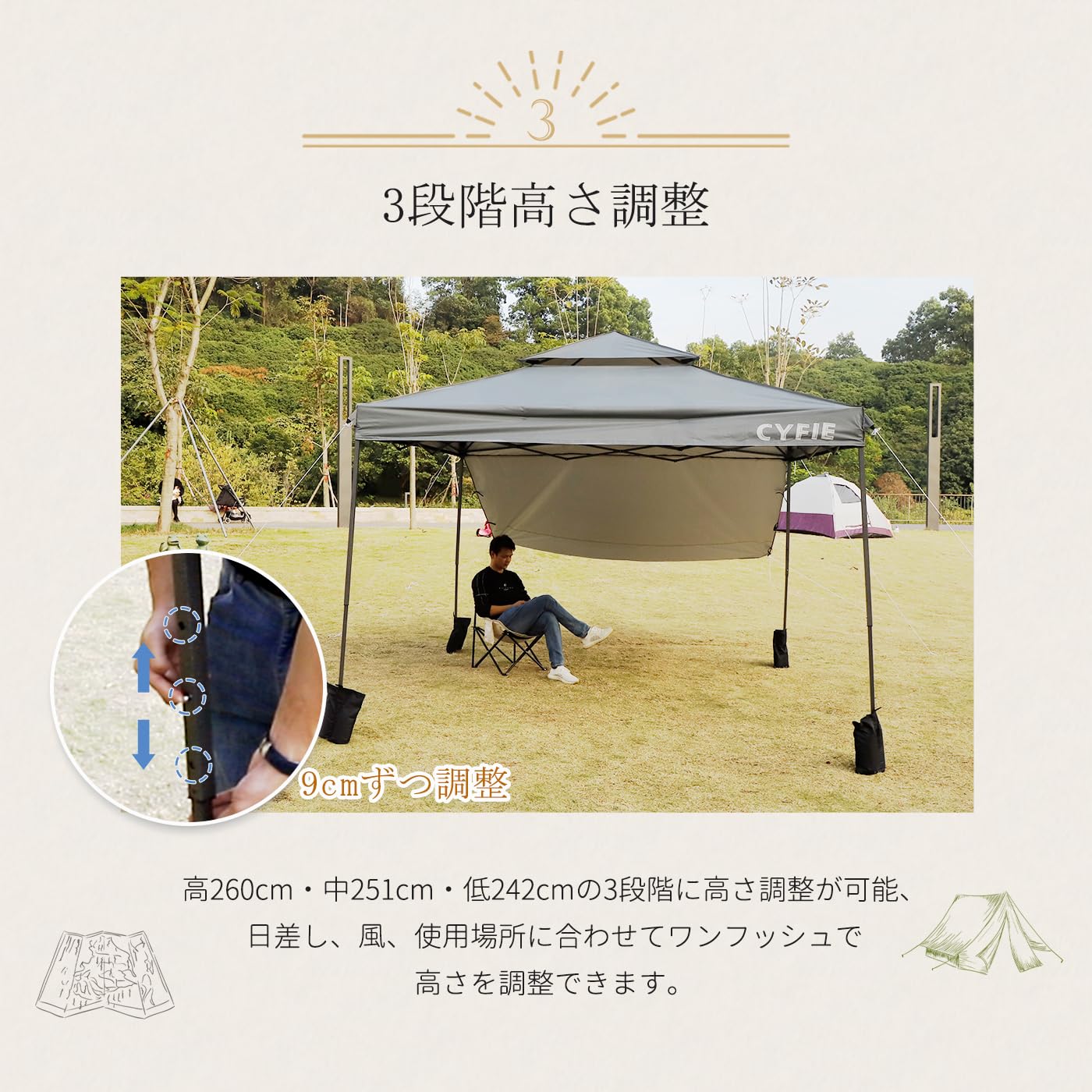 CYFIE タープテント UVカット 防水 断熱機能付き 3段階高さ調節 アウトドア・バーベキュー用
