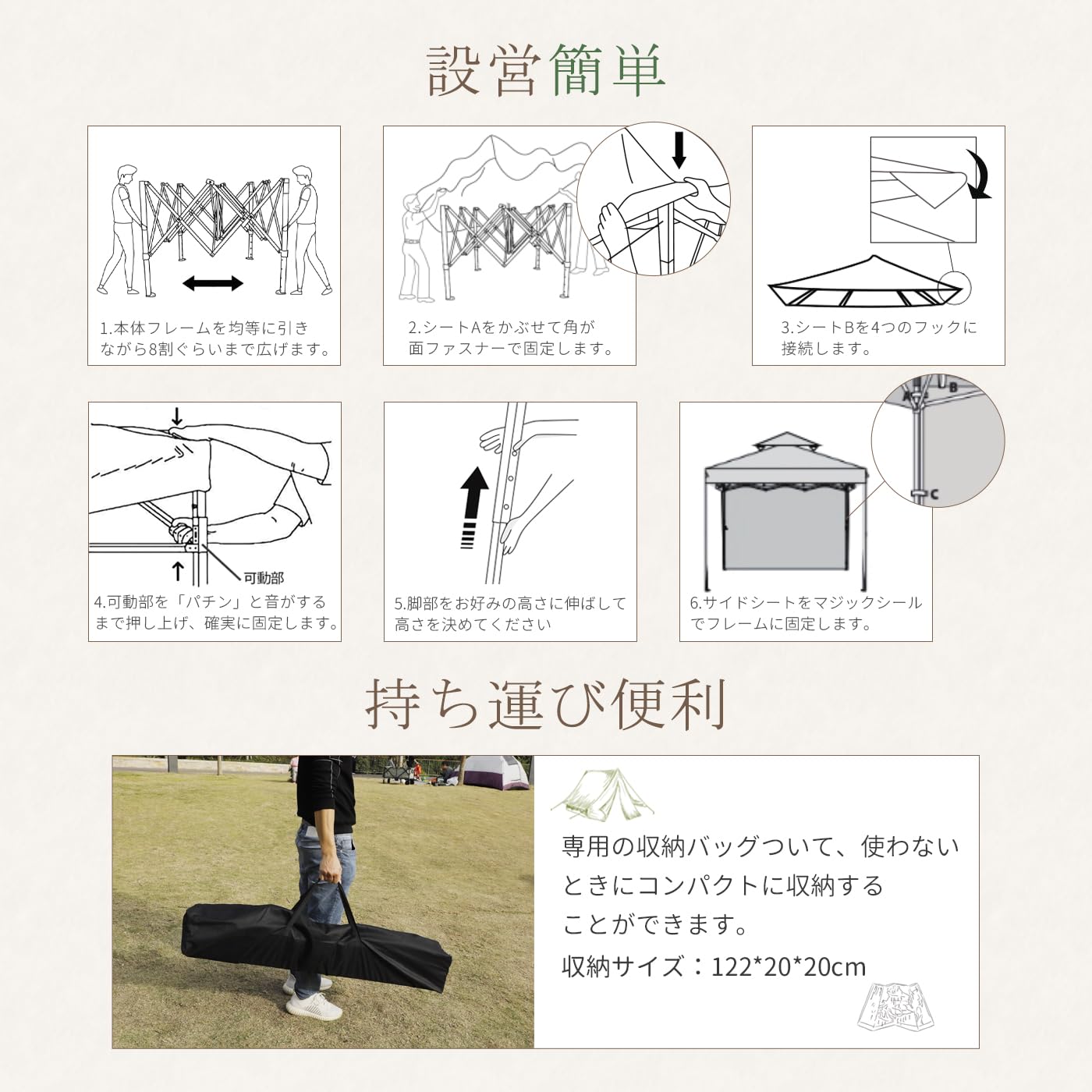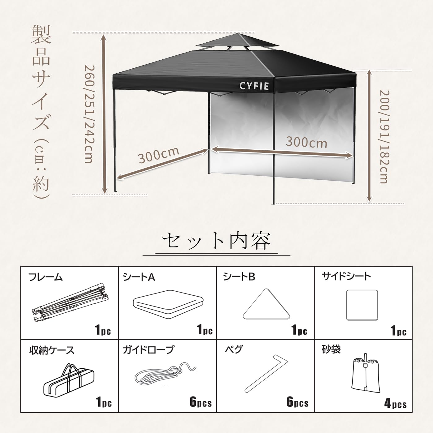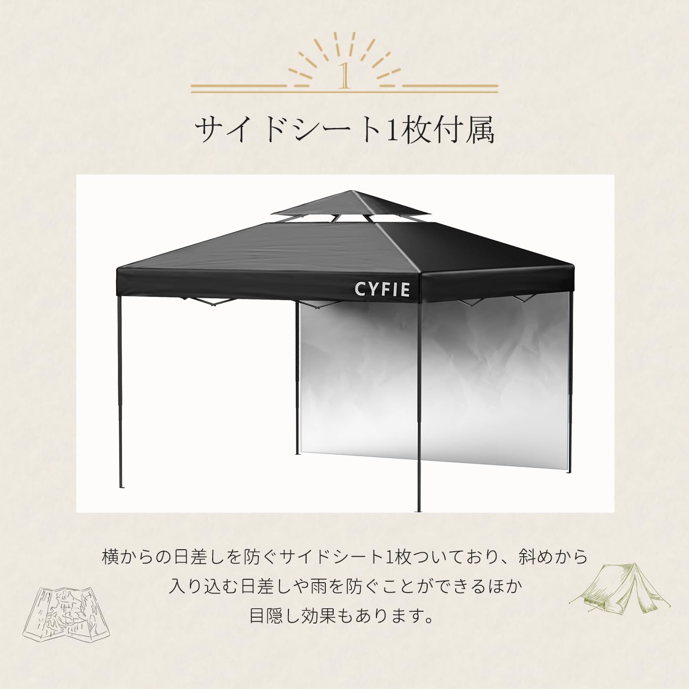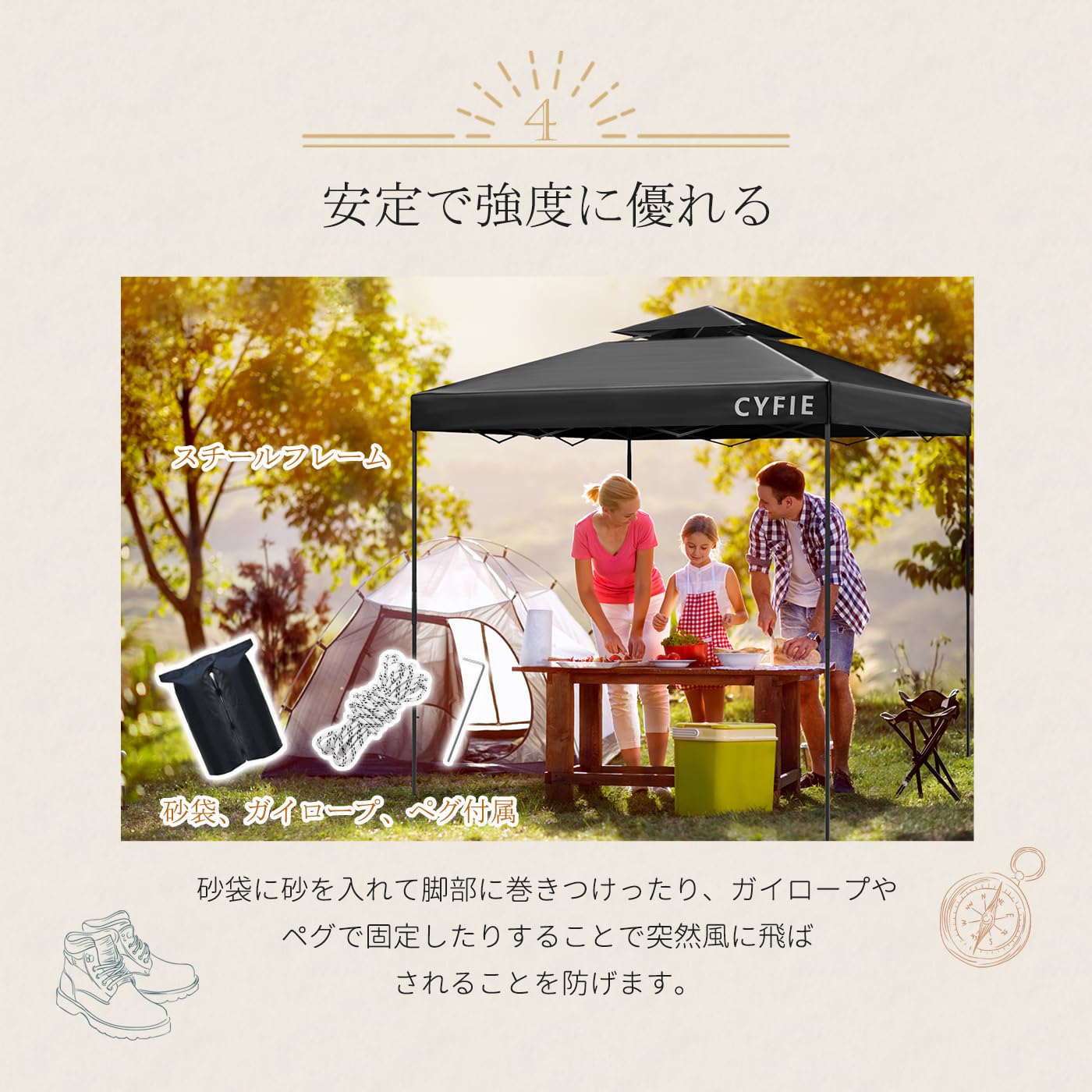 CYFIE タープテント UVカット 防水 断熱機能付き 3段階高さ調節 アウトドア・バーベキュー用
