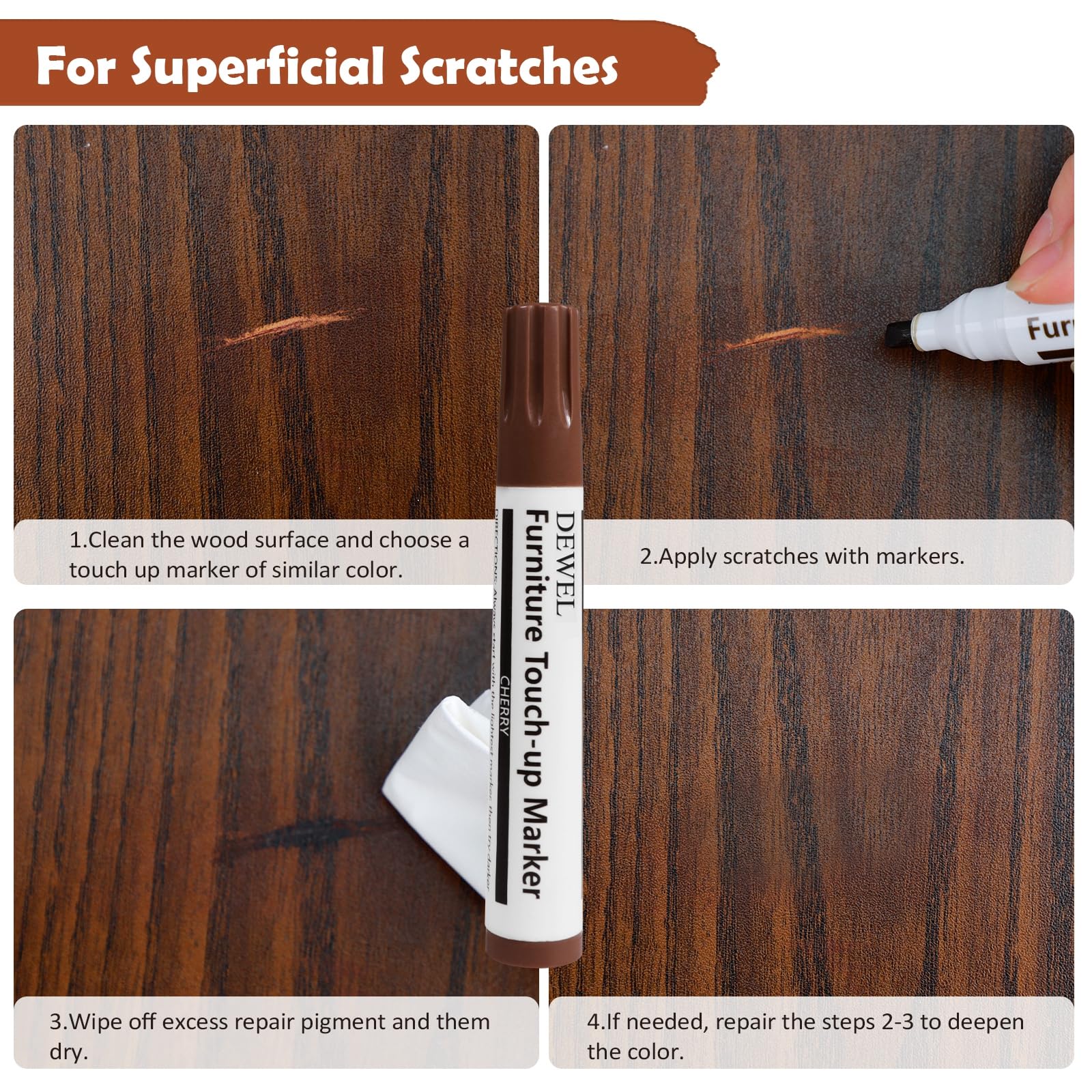 • [Easy-to-Use] To repair a piece of furniture, select or blend the color that matches your furniture. After applying the filler to any cracks or scratches, smooth the surface using a scraper. You can use the markers to draw wood grain or to patch up any minor scratches.