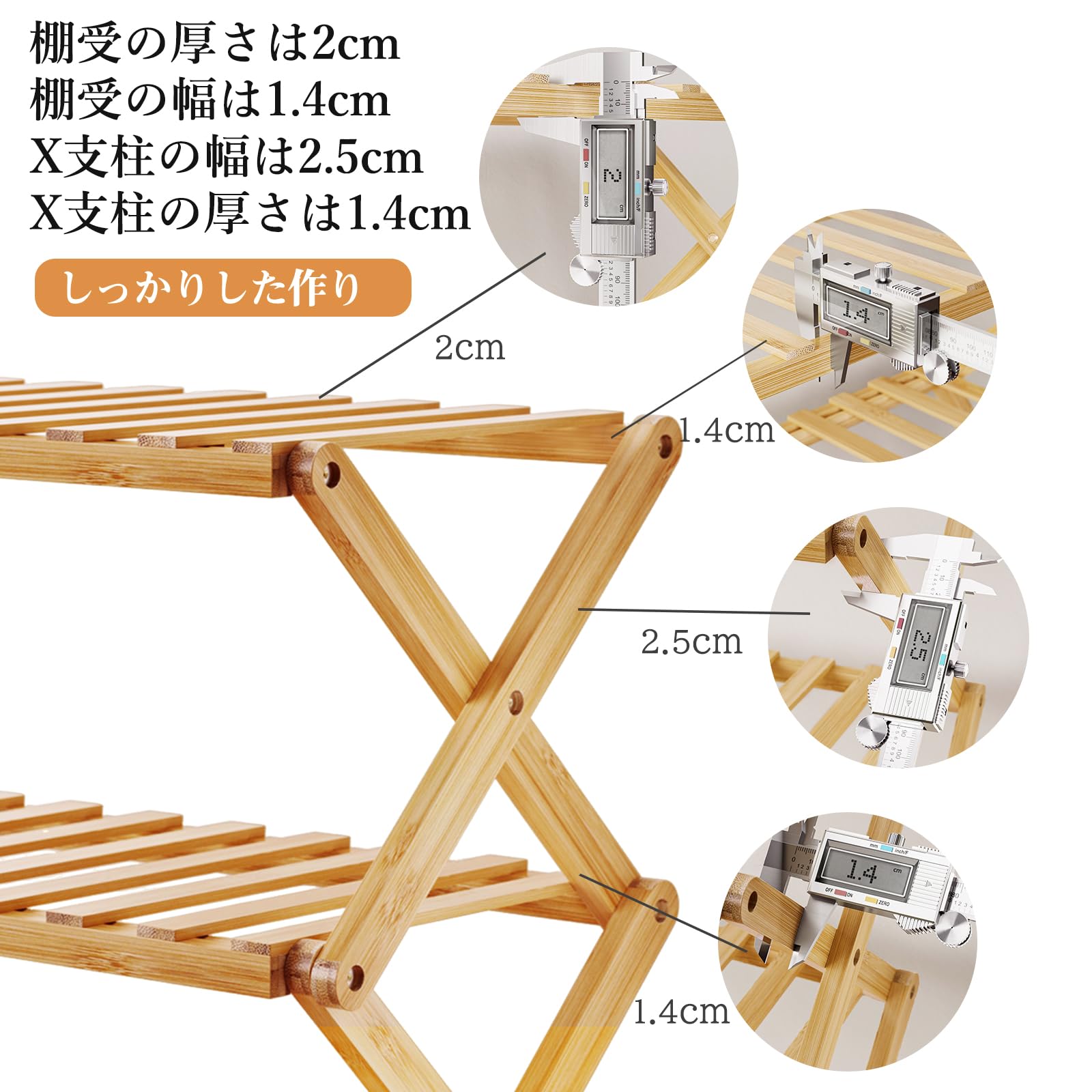 DEWEL シューズラック 4段 伸縮式 折りたたみ 天然竹製 靴収納 完成品 組み立て不要 ナチュラル