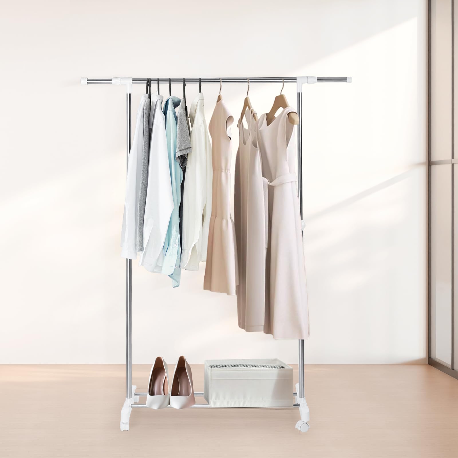 • 幅と高さ調節可能】高さは102.5cmから178cmまで調整可能、幅は94cmから139.5cmまで調整可能です。靴や箱を収納するために底部に収納スペースを作ります。伸縮性のデザインで、服、帽子、バッグなどに余分なスペースを提供します。子供服からワンピースやロングコートまで、掛ける衣服に合わせて好みの高さに調節できる。