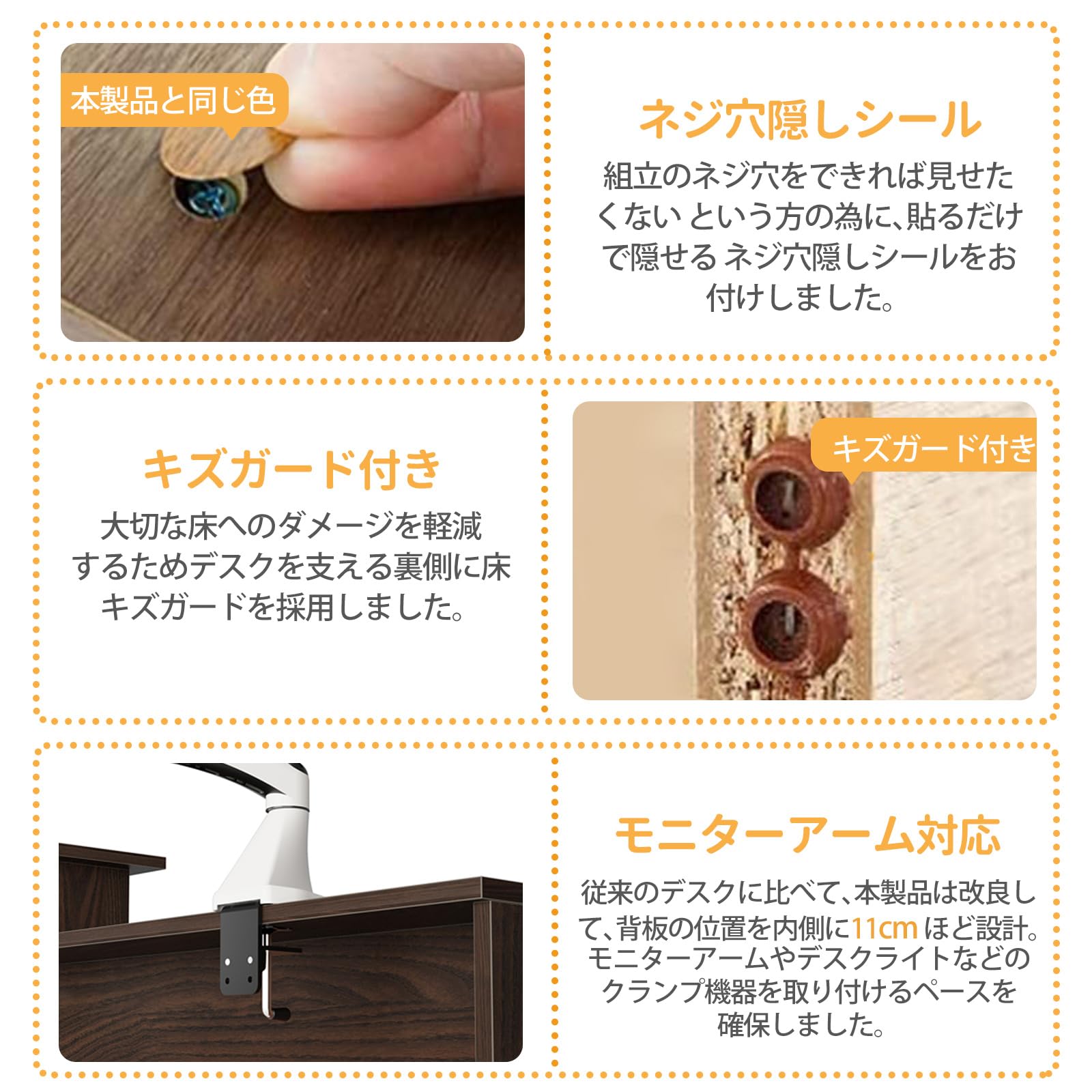 • モニターアーム対応】従来のデスクに比べて、本製品は改良して、背板の位置を内側に11cmほど設計。モニターアームやデスクライトなどのクランプ機器取り付けられます。