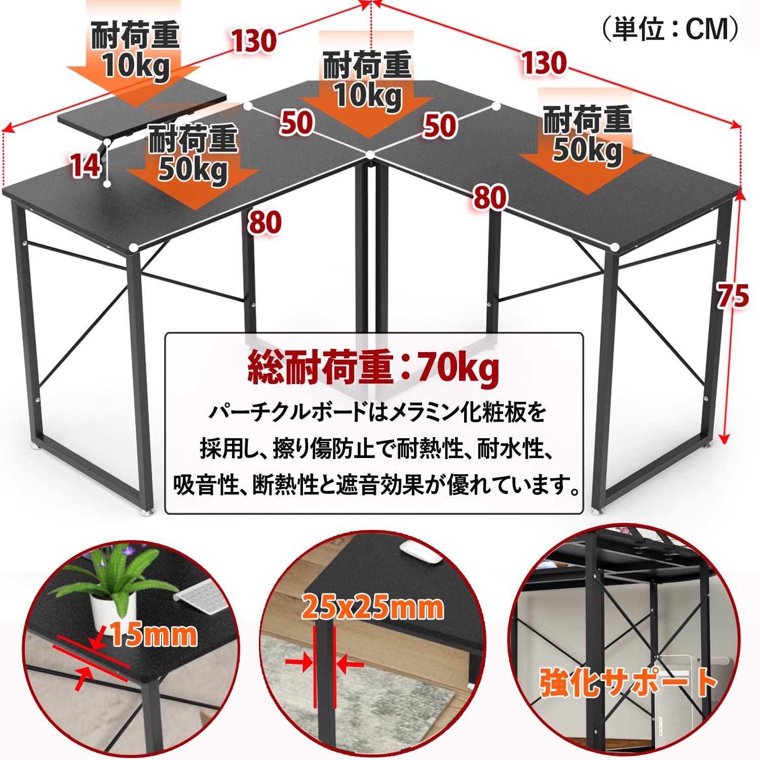 • 総耐荷重70kg】 モニタースタンド:10kg 天板:それぞれ50kg コーナー:10kg