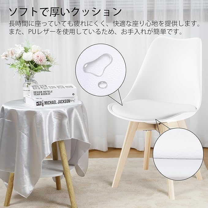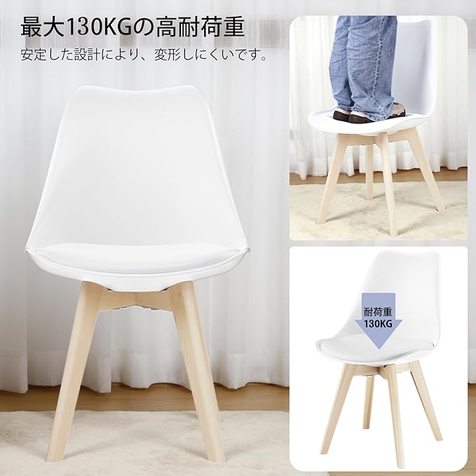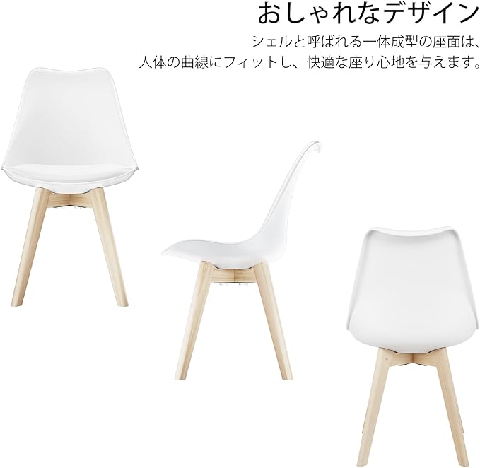 DEWEL ダイニングチェア 2脚セット 北欧風 クッション付き 背もたれ付き おしゃれチェア ホワイト