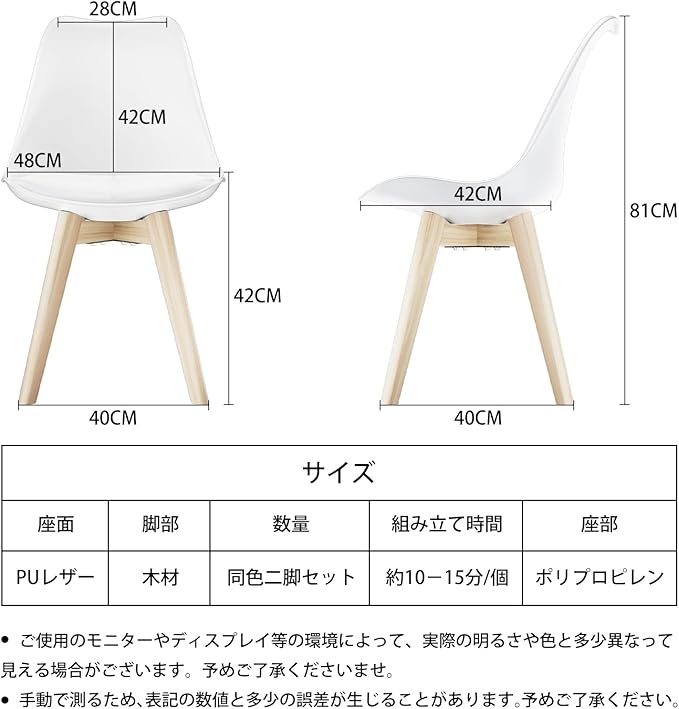 • 商品仕様】 ➤サイズ:約高さ81cm×奥行き42cm×幅48cm ➤耐荷重:約130kg ➤素材:座部/ポリプロピレン、クッション/PU、脚部/木製 ➤ご注意:実寸サイズを測っているため多少誤差が出る場合があります。