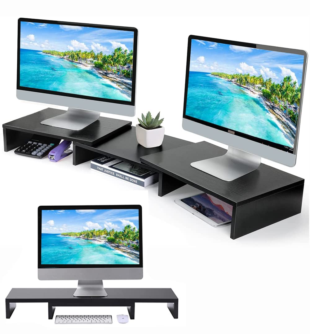 • 自分のデスクトップをDIY】モニタースタンドの高さと角度を個人の使用方法に合わせて自由に調整できます。デュアルモニター、ラップトップ、タブレット、ランプ、スマホ、スピーカーなどのデバイスを配置して、作業効率を向上させます。