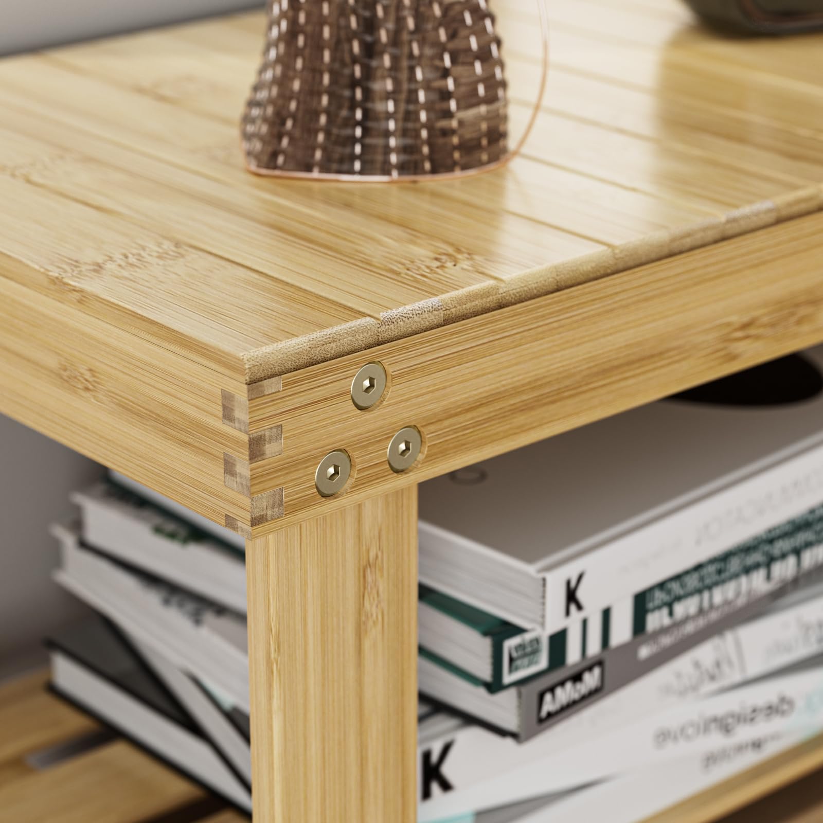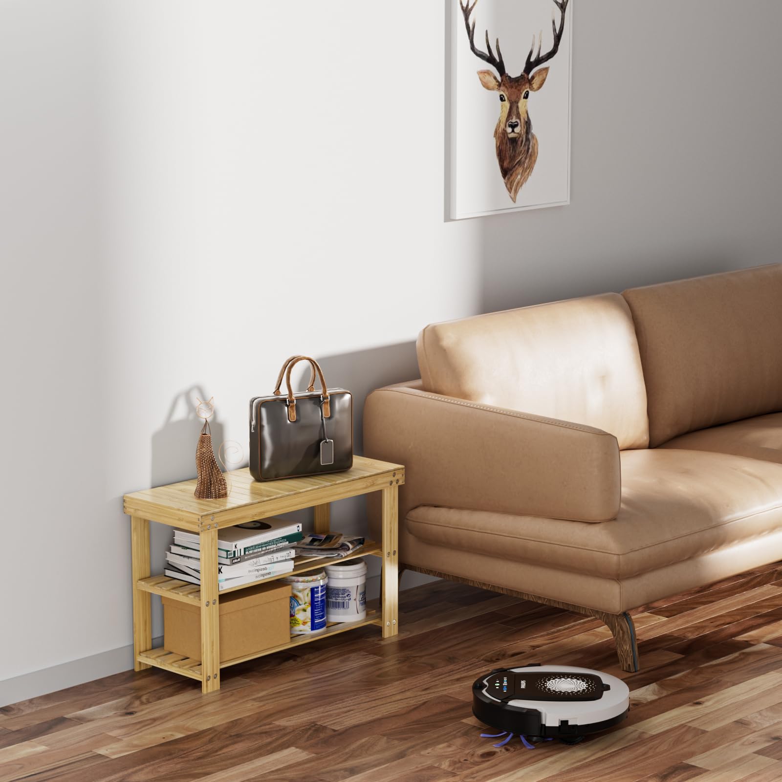 DEWEL 玄関ベンチ 収納付き シューズラック 竹製 2段 幅70cm 組立簡単