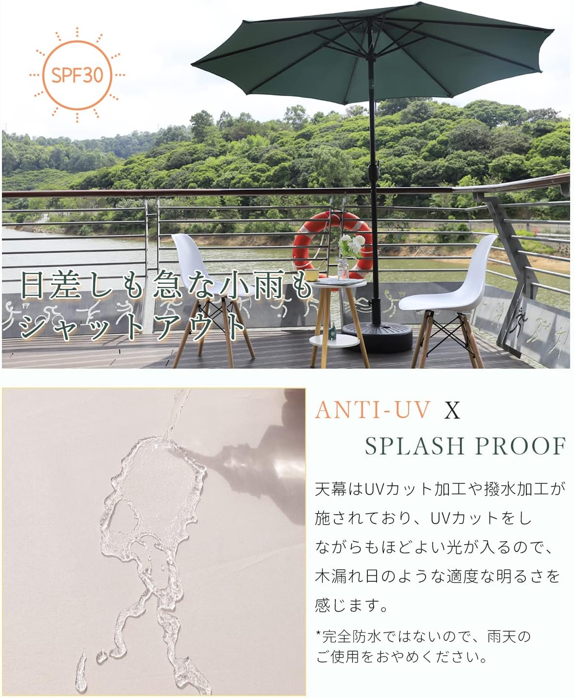 【UVカット&撥水加工生地で安心】丈夫な生地は紫外線をカットし、日焼け対策に適します。さらに小雨や水滴を弾き、屋外でも安心して使用できます。(完全防水ではありませんので、雨天でのご使用をやめください)