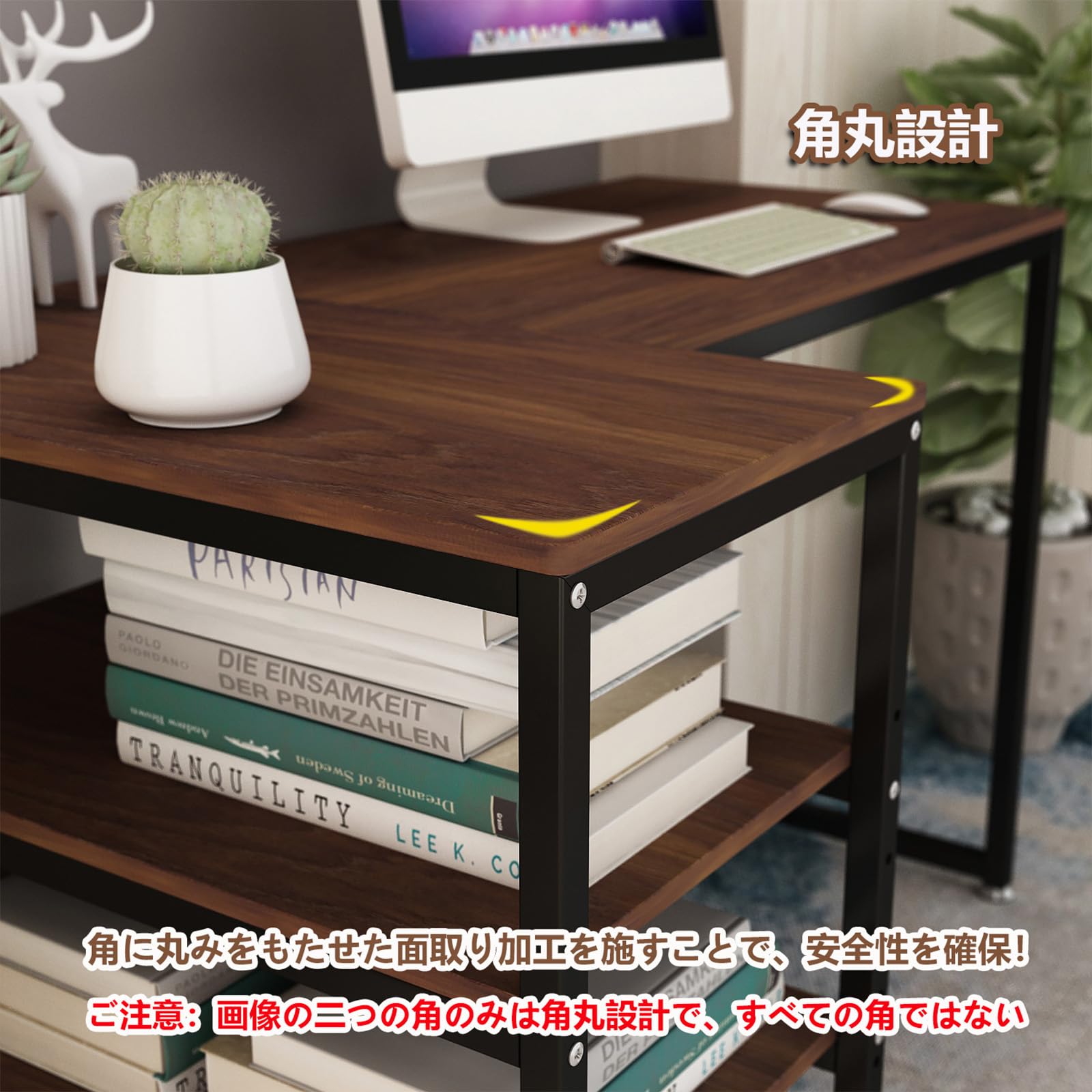 DEWEL L字型パソコンデスク 120cm 収納ラック付き モニターアーム対応 木製 コーナーデスク リモートワーク対応