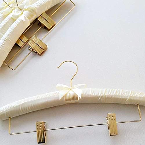 DEWEL サテンスポンジハンガー 5本セット クリップ・リボン付き 布製ふっくらハンガー クローゼット・客間用