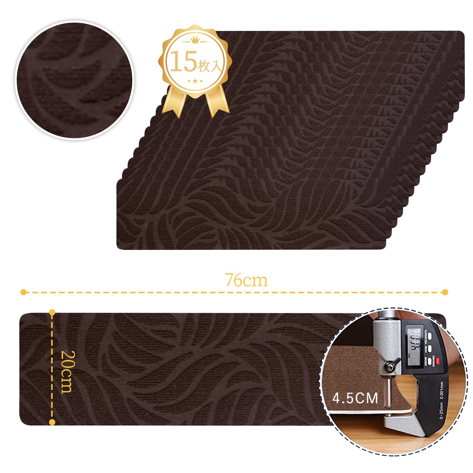 DEWEL 階段マット 15枚セット 滑り止め 吸着タイプ 700×200mm 洗える 床暖房対応