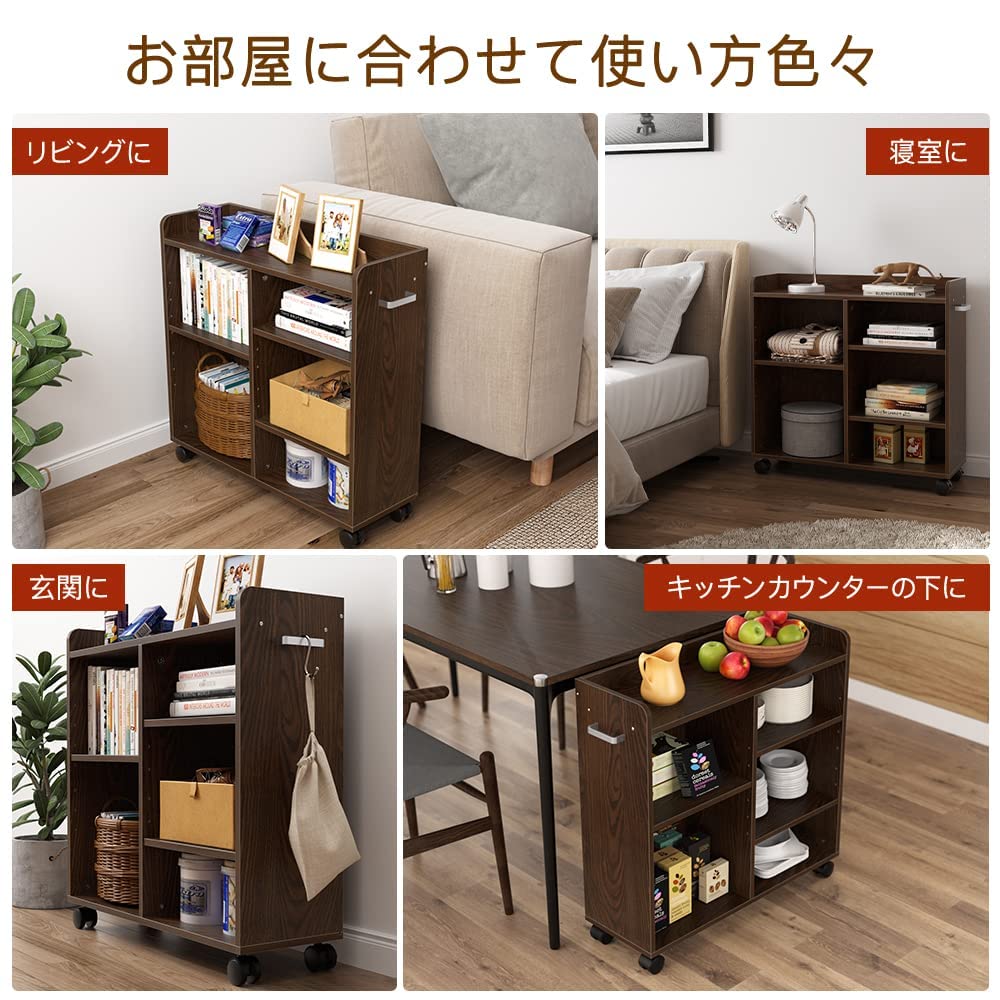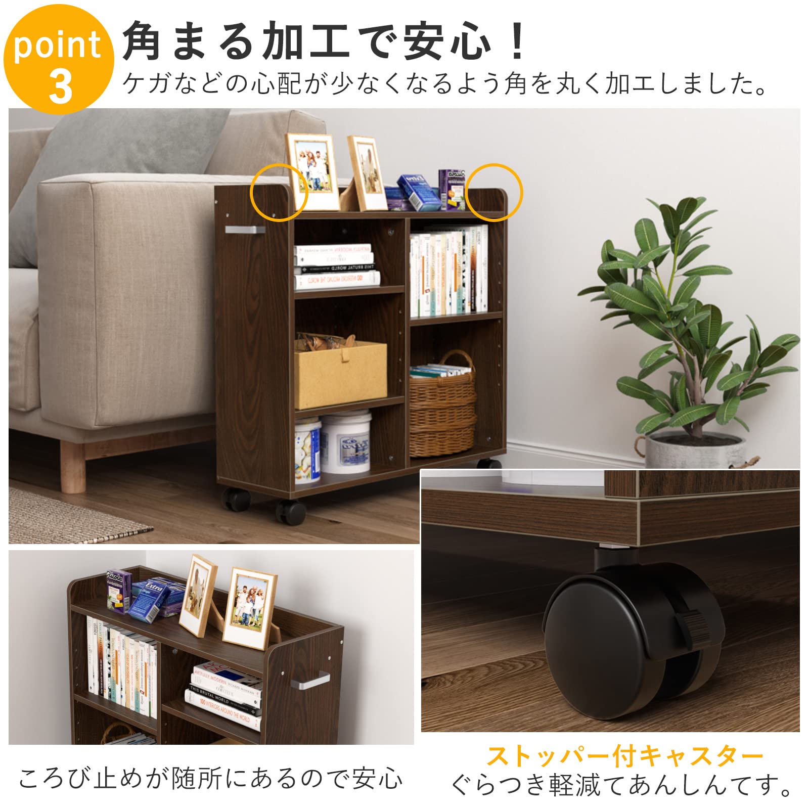 DEWEL キッズ収納ラック 本棚 ランドセル対応 キャスター付き 幅26cm 木製