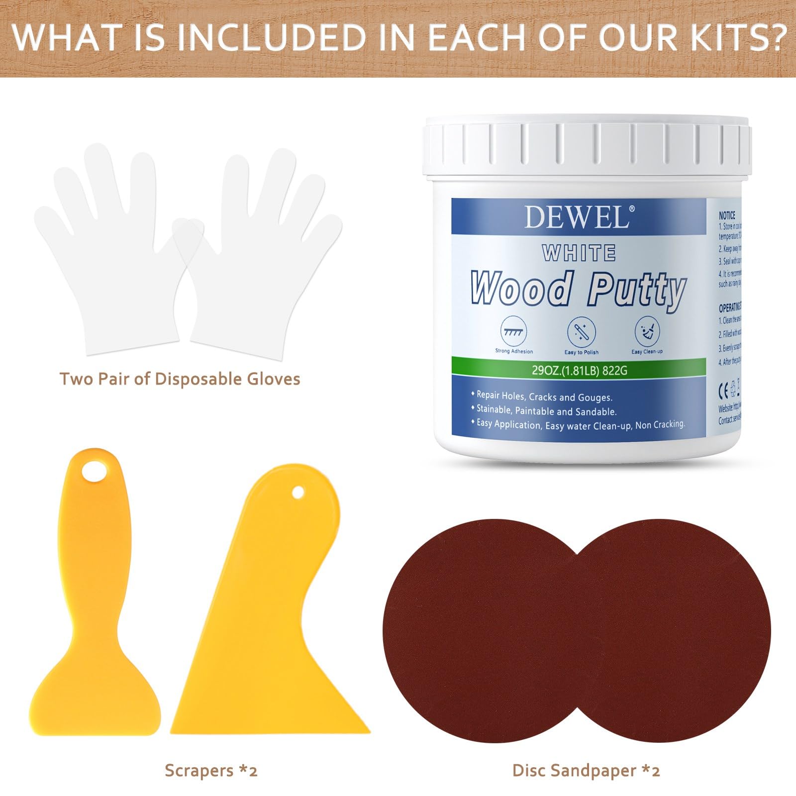 DEWEL 木工用パテ 800g ホワイト 木材補修パテ スクレーパー・サンドペーパー・手袋付き