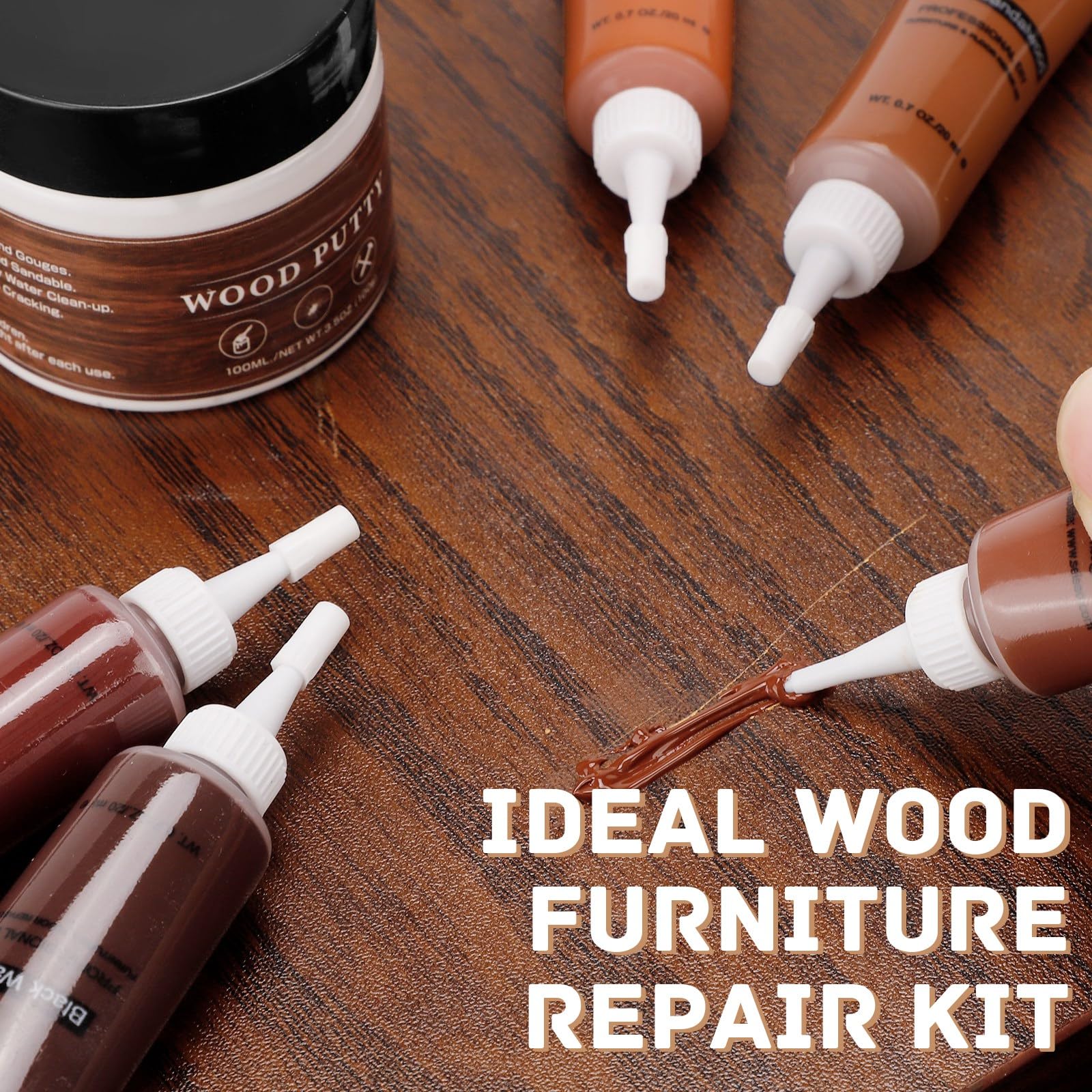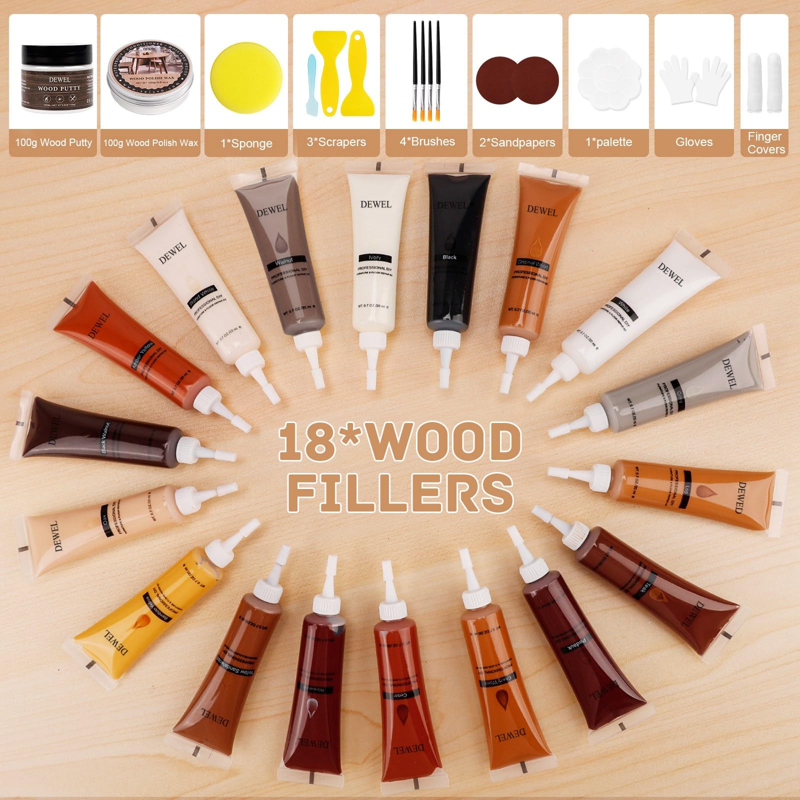 DEWEL 木製品補修キット 18色補修クリーム+木工パテ・蜜蝋100g付き 家具・フローリング用