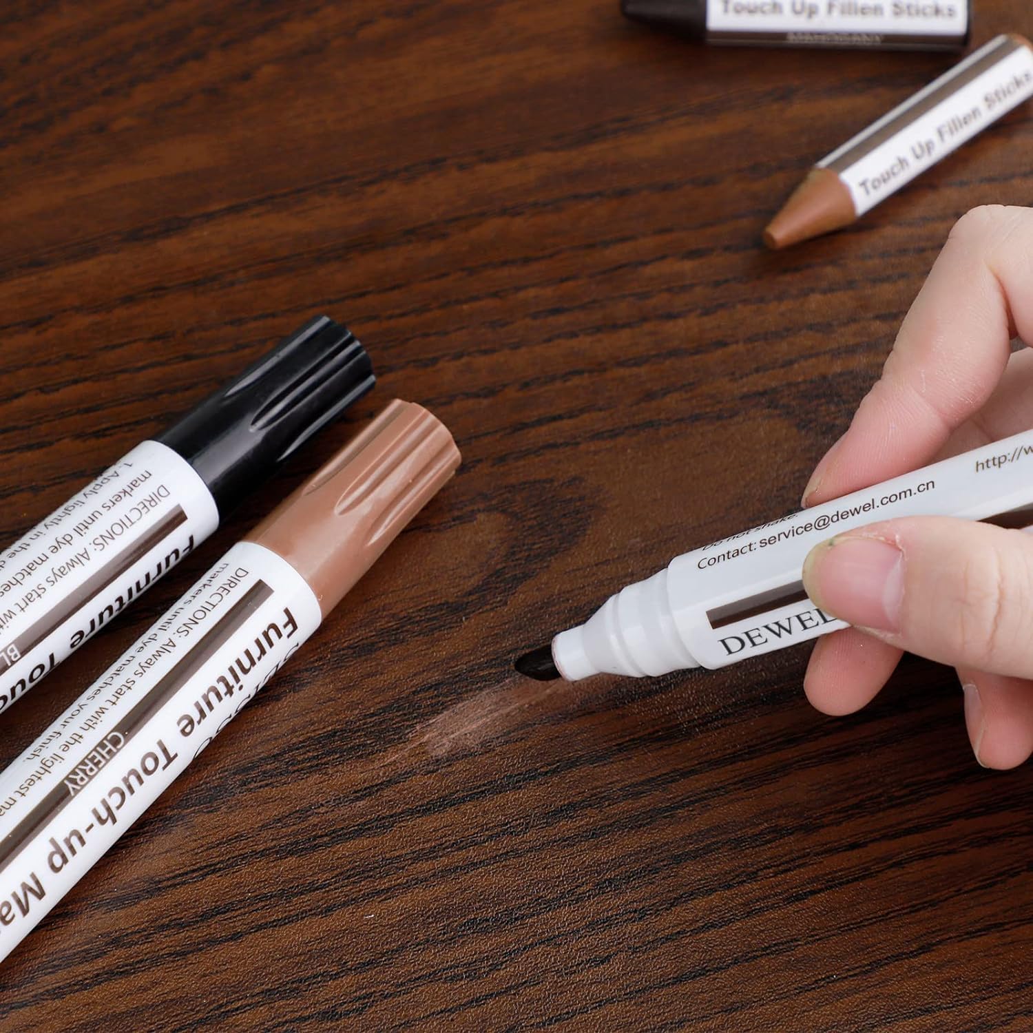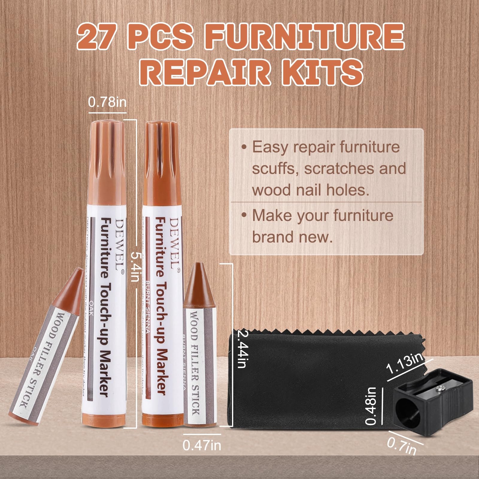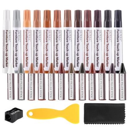 DEWEL 木製補修キット 12色補修ペン+12色補修棒 24本セット 芯削り器付き 家具・床・ドアの傷補修用