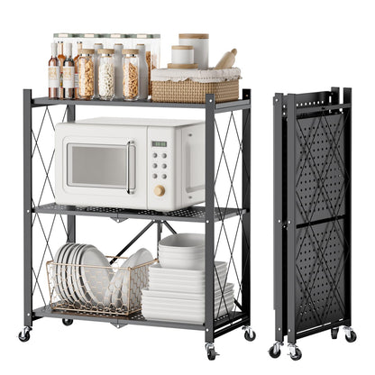 DEWEL 折り畳みスチールラック 3段 キャスター付き 幅71cm 防錆加工