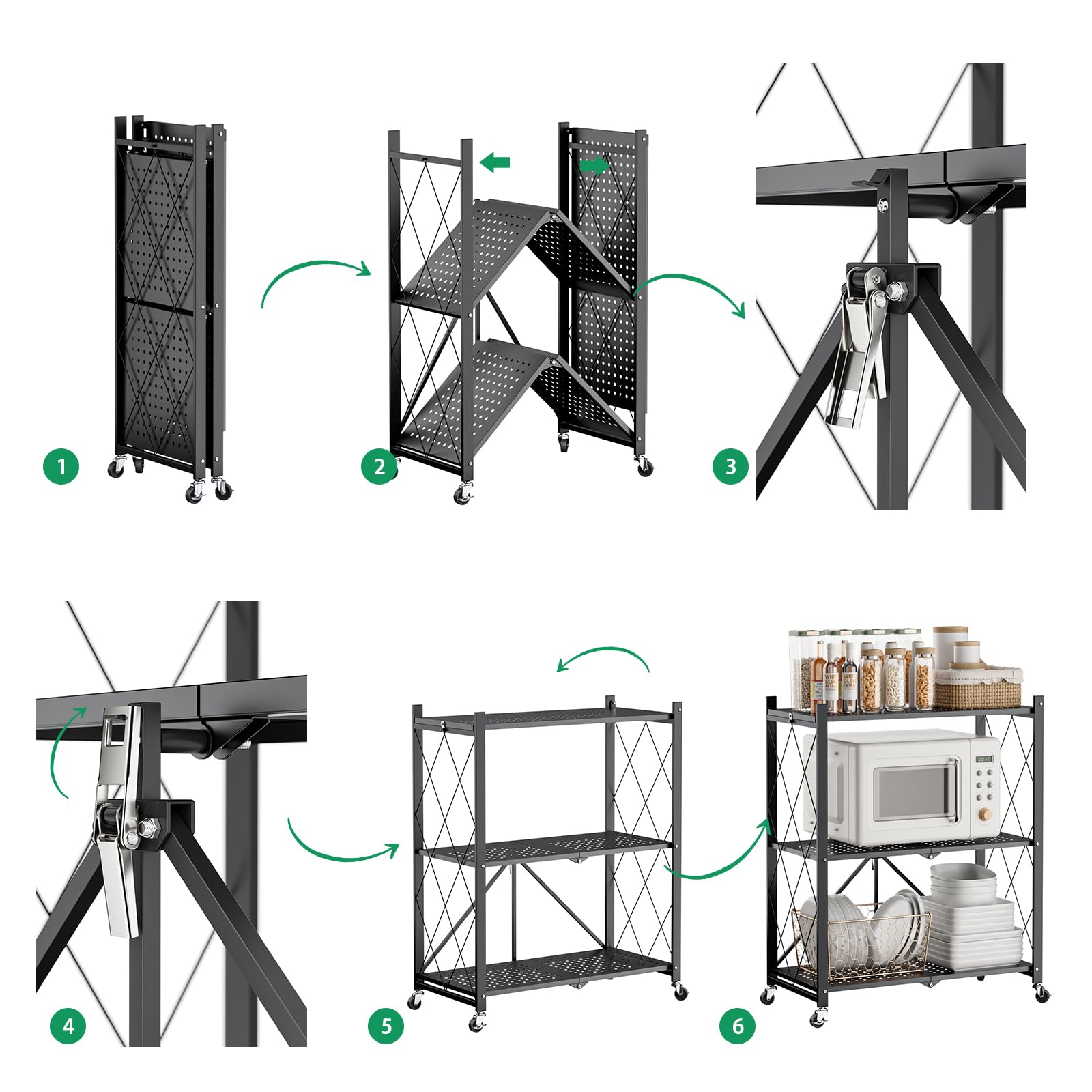• 🏠【組み立て簡単】面倒な組み立て作業は必要なく、開いて使うだけです。女性でも簡単に組み立てることができ、キャスターを取り付けて棚の左右を広げてロックするだけで設置が完了します。たったこれだけの簡単操作で、その空間がすぐに収納として使えます。