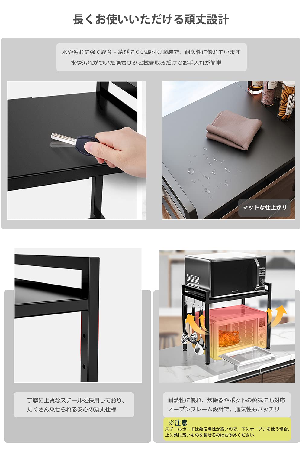 DEWEL レンジ上ラック 伸縮式 高さ調節可 耐熱・耐水 ステンレス製 ブラック