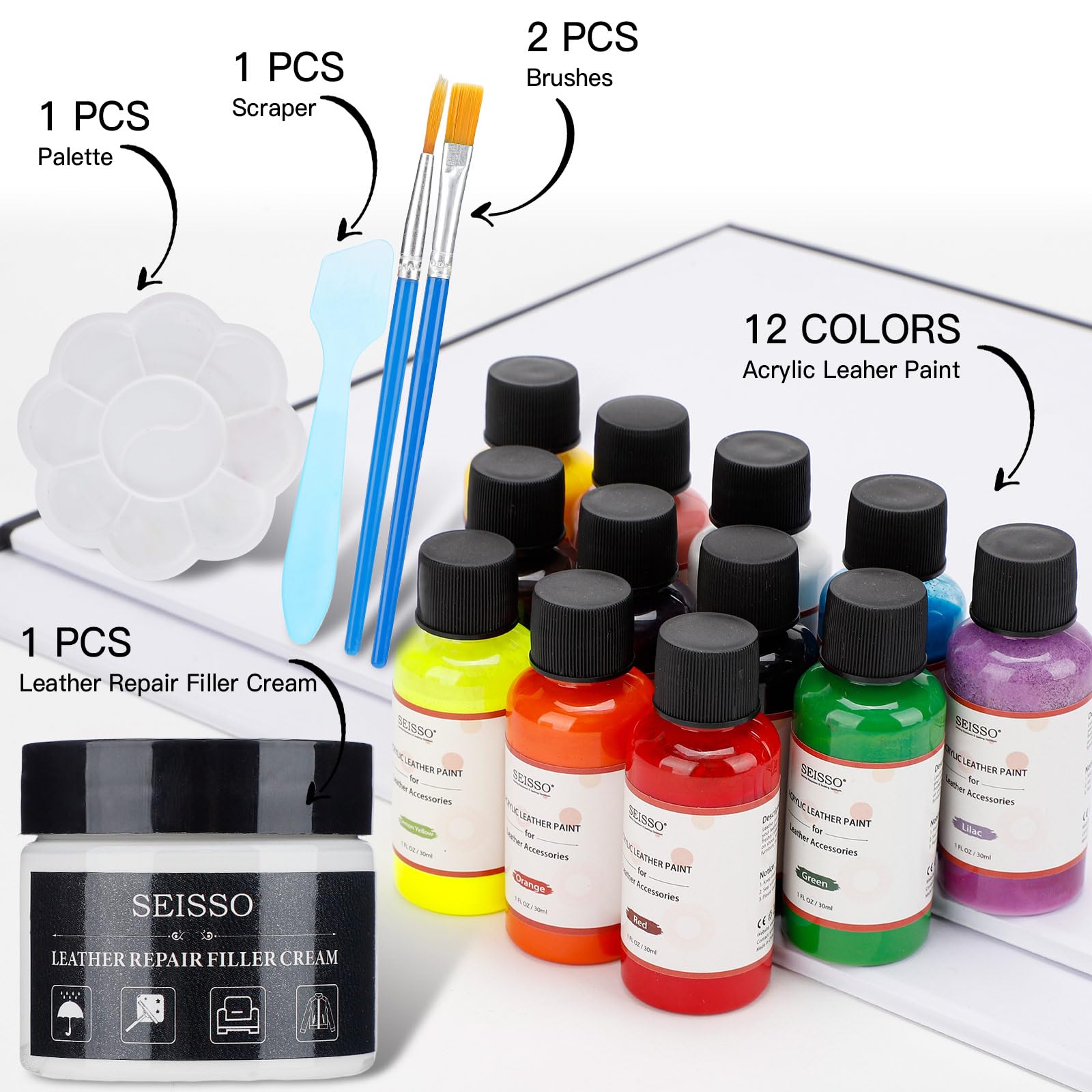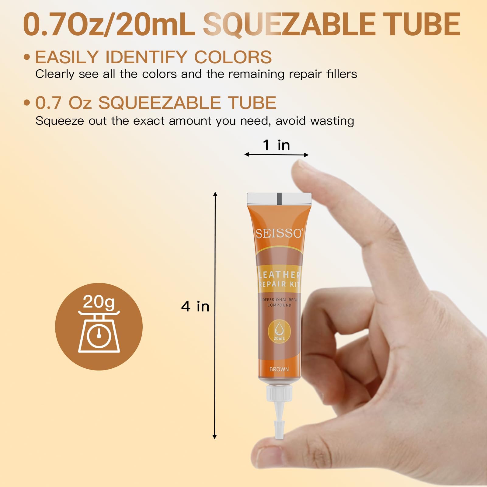 • 12-COLOR LEATHER REPAIR FILLER: SEISSO leather vinyl repair kit comes with 12 colors leather repair fillers, which can be used on different shade of damaged leather surface what you need. These 12 decent sized tubes of most colors needed to blend, you can match the right color to repair leather surface
