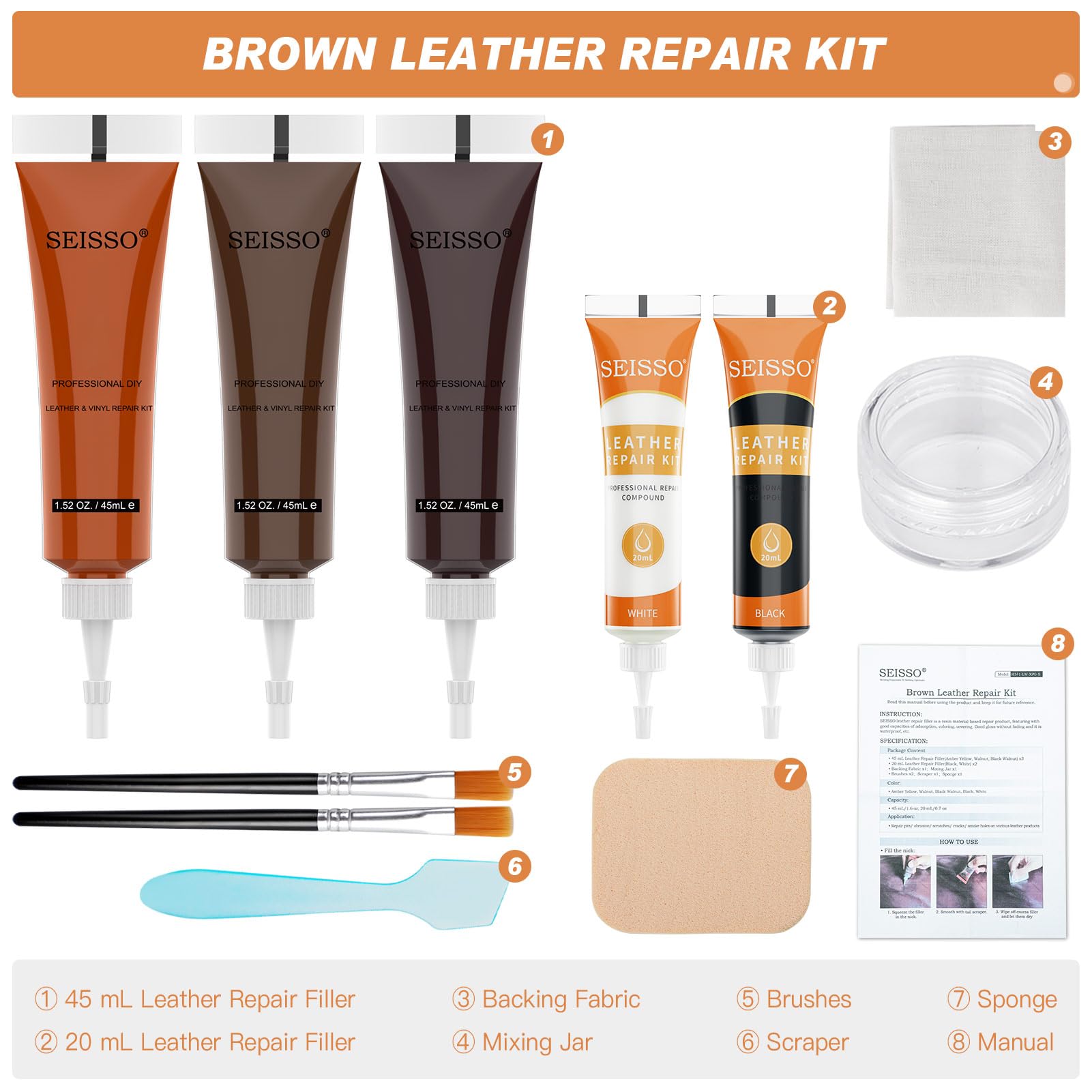 • REPAIR FOR LEATHER FURNITURE: Are you troubled about your scratched faded leather furniture? SEISSO leather vinyl repair kit will repair minor damages like leather scratches, holes, tears, stains, cracks, pet cat dog scratch marks and peeling leather. Small things to solve big trouble!
