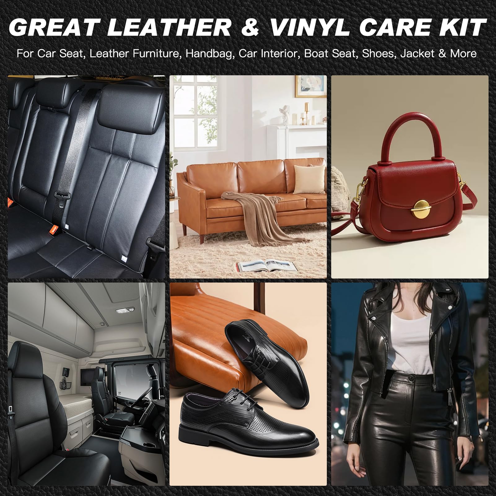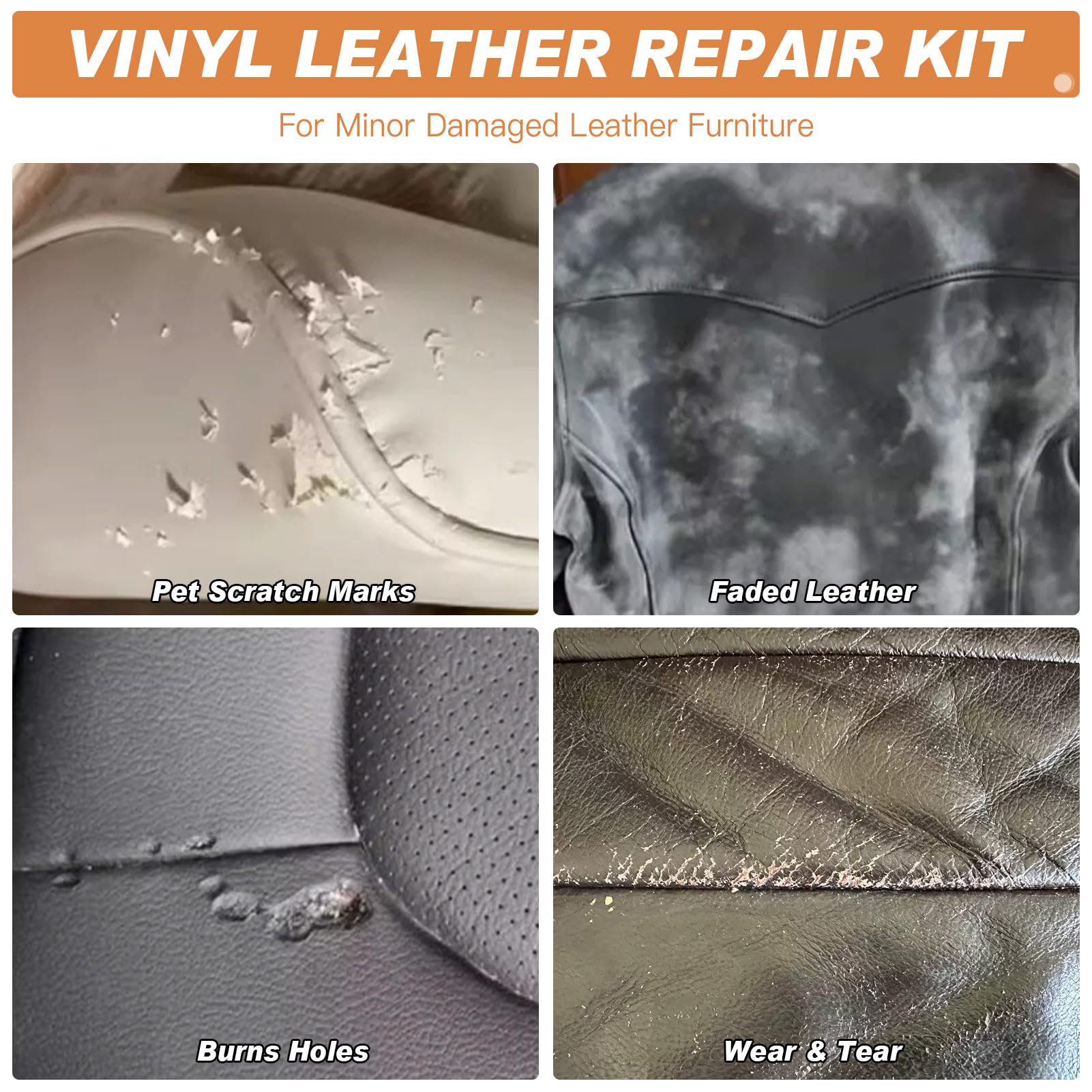 • PROFESSIONAL RESULT AS YOU SEE: The leather and vinyl repair kit can great repair for scratched leather items such as leather furniture, couch, sofa, car seat, car interior, vinyl seats, shoes, bag, purse, jacket, saddle and so on. Bring your favarite leather funiture brand new with our vinyl leather repair kit!