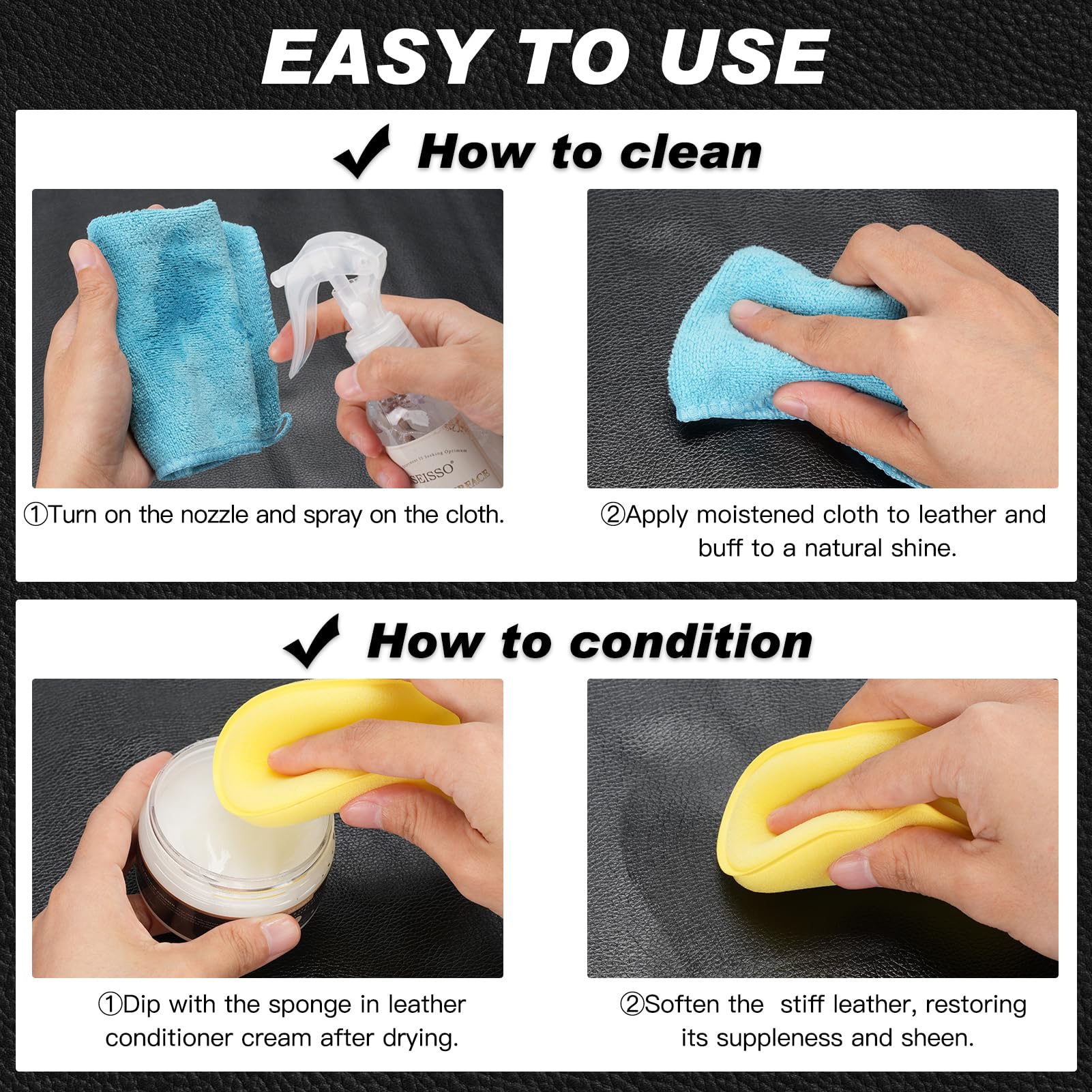 • REPAIR LEATHER AT EASE: Follow the included Instruction, clean the damaged leather area and keep dust-free. Next, squeeze the leather filler in the repaired area and smooth with tail scraper. Finally, wipe off the excess leather repair filler and wait to dry with 1-3 hrs