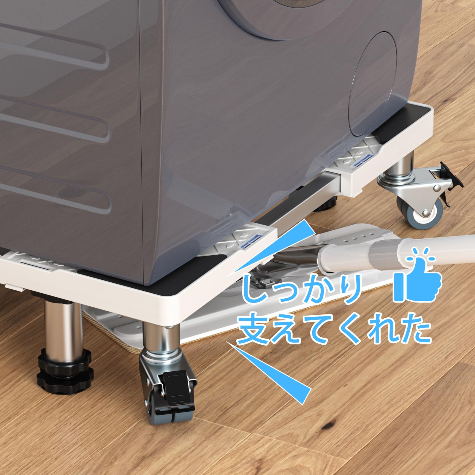 • 耐荷重500kg・減音防振】全部素材が耐水耐食材質なので、水回りでの使用も錆びの懸念は要りません。品質素材なので、キズ・色移りの心配も要りません。洗濯機対応、耐荷重内のその他の家電や家具にもお使い頂けます。