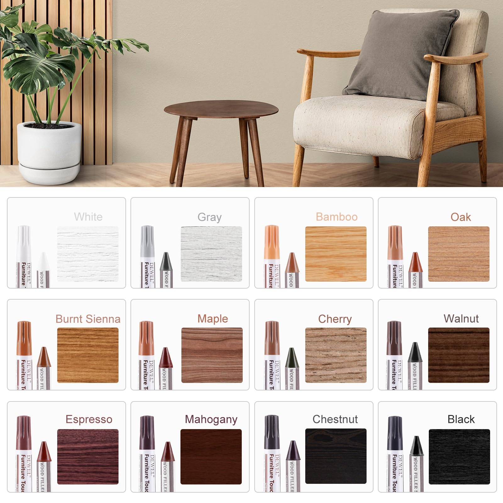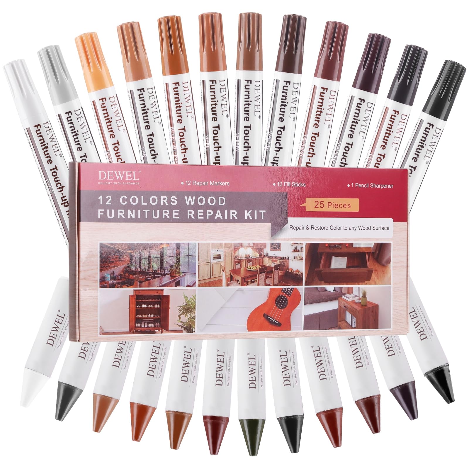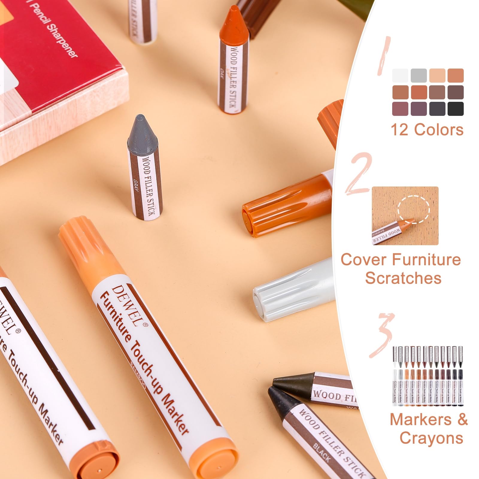 DEWEL 木製品補修セット 12色 補修ペン&補修棒 ウッドフィラー付き