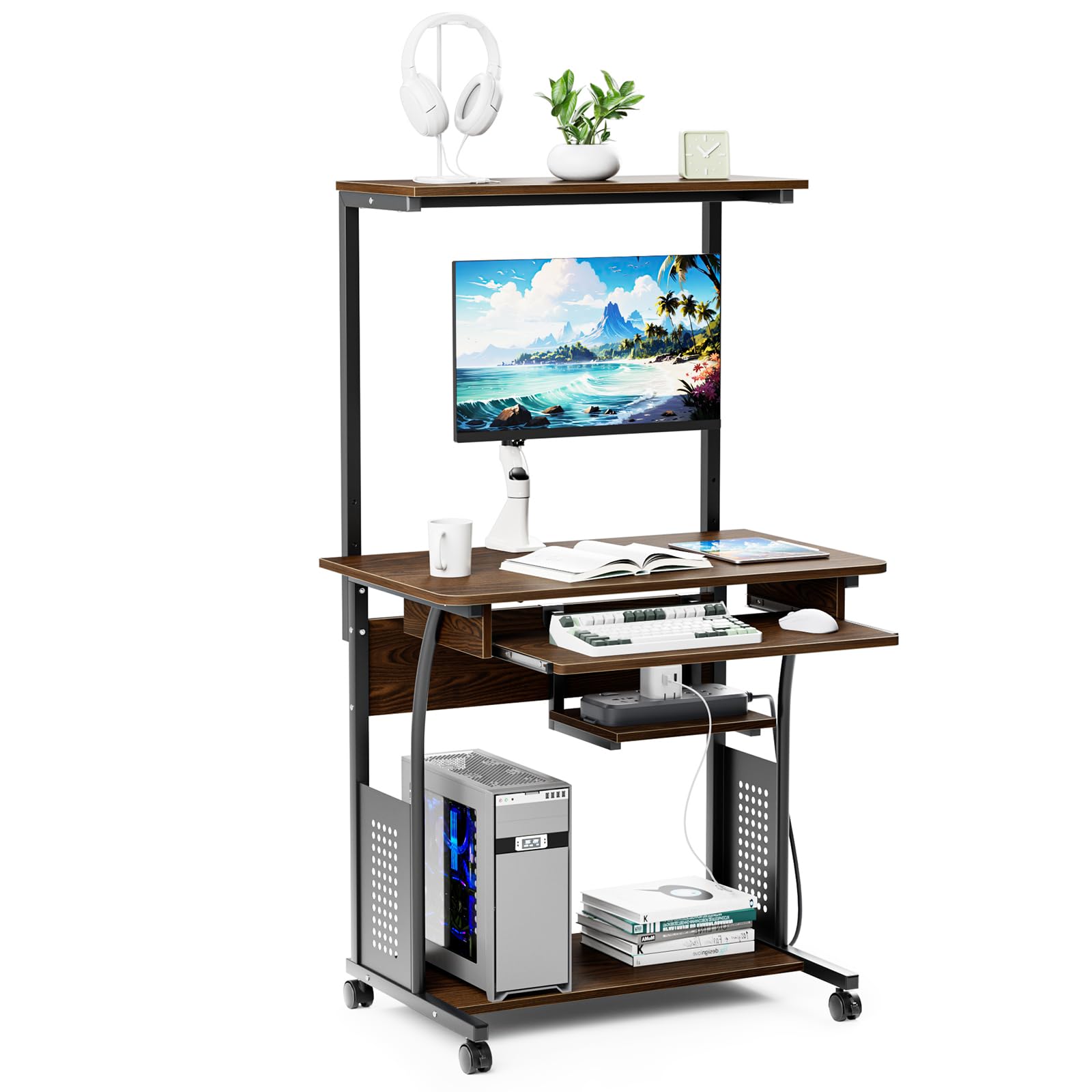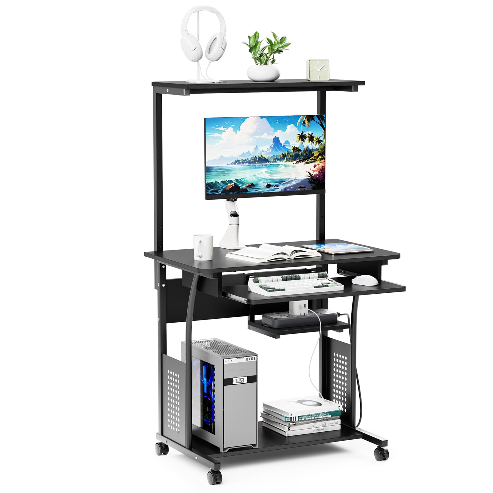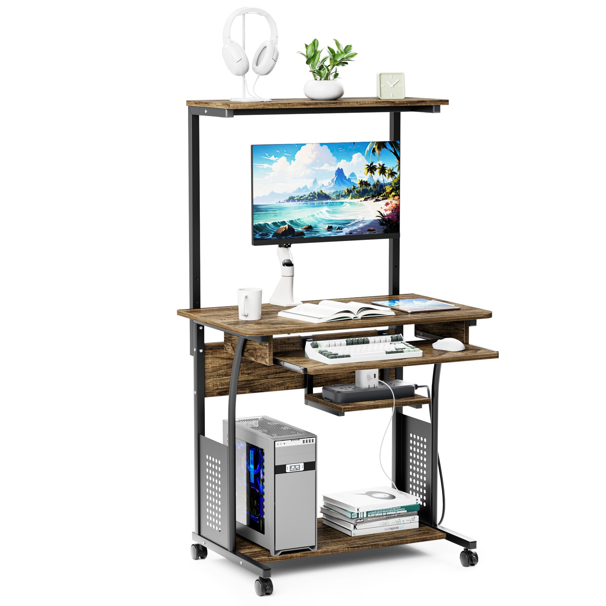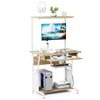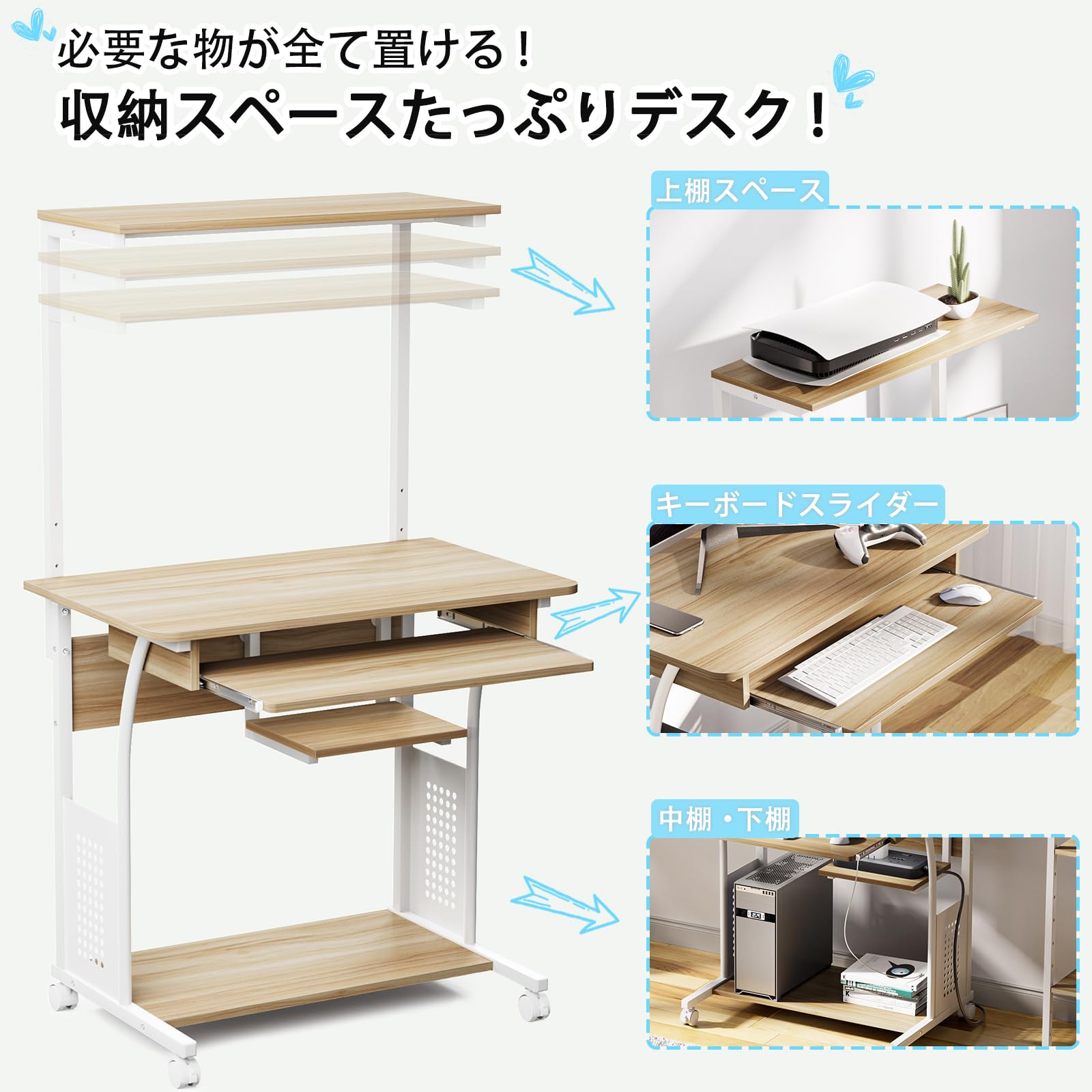 DEWEL パソコンデスク 収納ラック付き 木製PCデスク キャスター&キーボードテーブル付き 省スペース 80×50×135cm